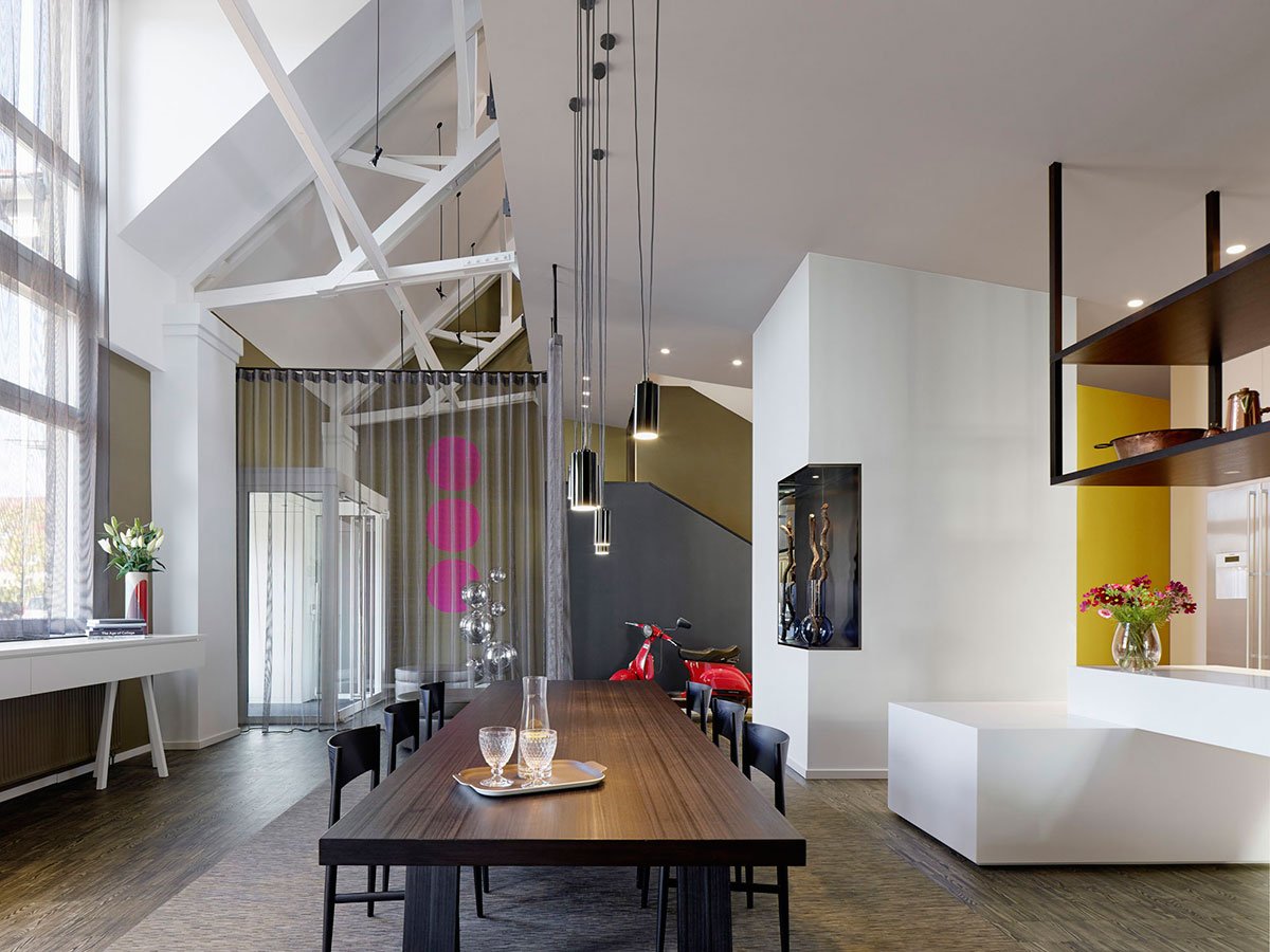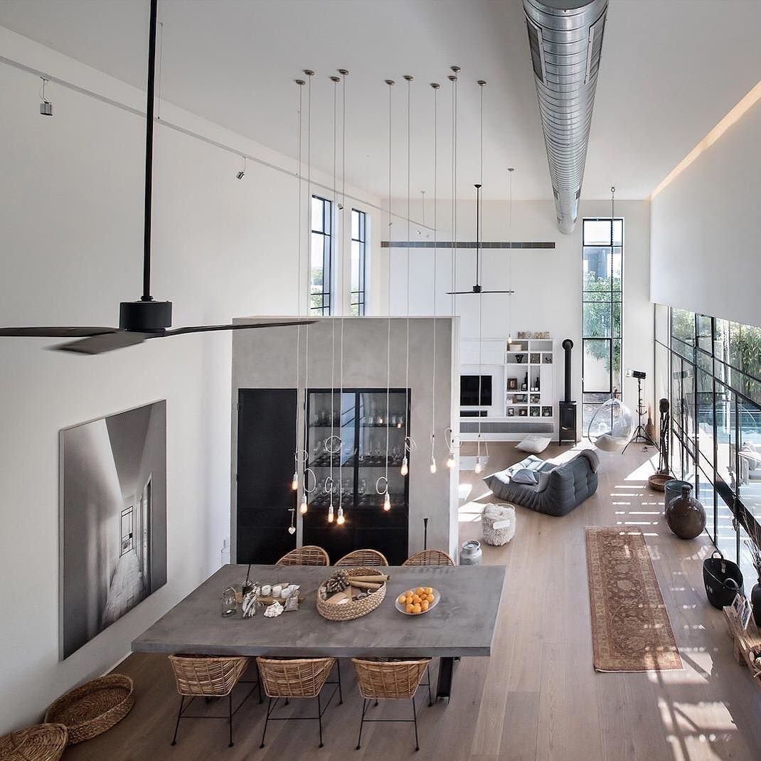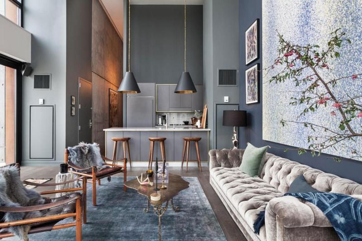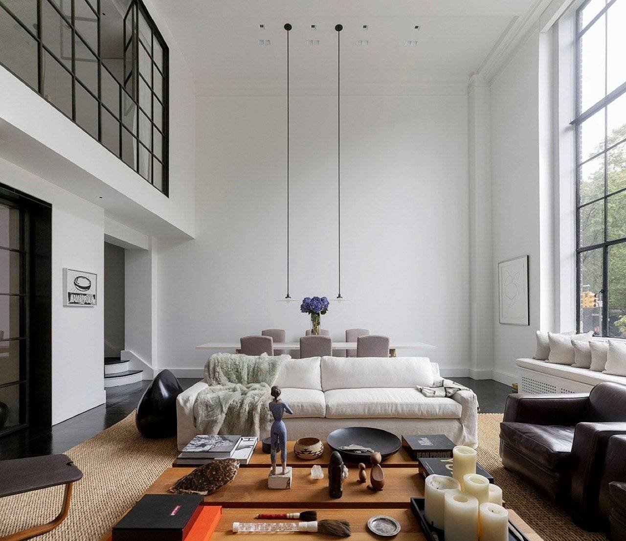 Интерьер лофт с высокими потолками