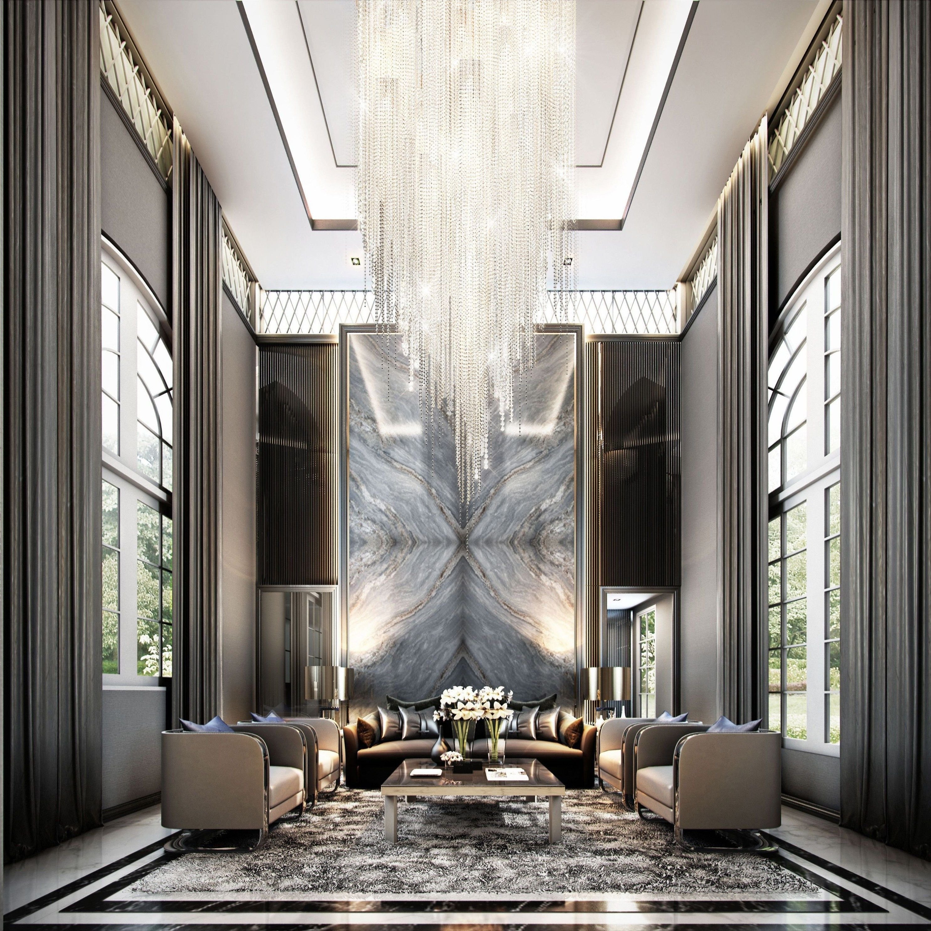 Интерьер с высокими потолками