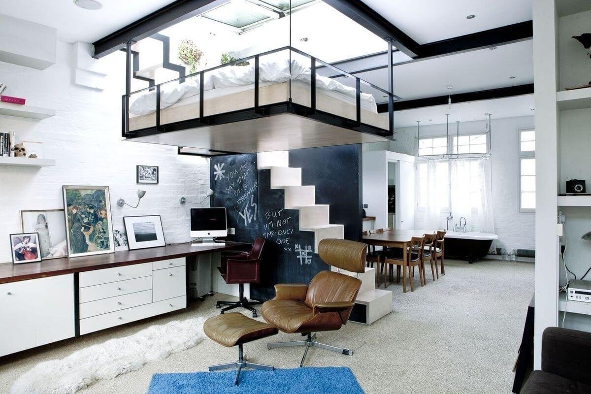 Антресольный этаж в стиле лофт в маленькой студии