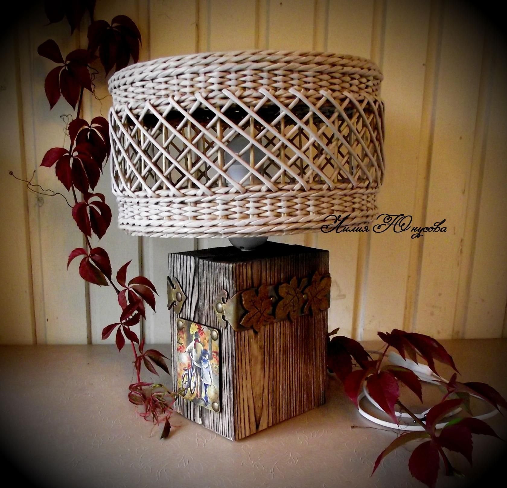 Абажур из газетной лозы