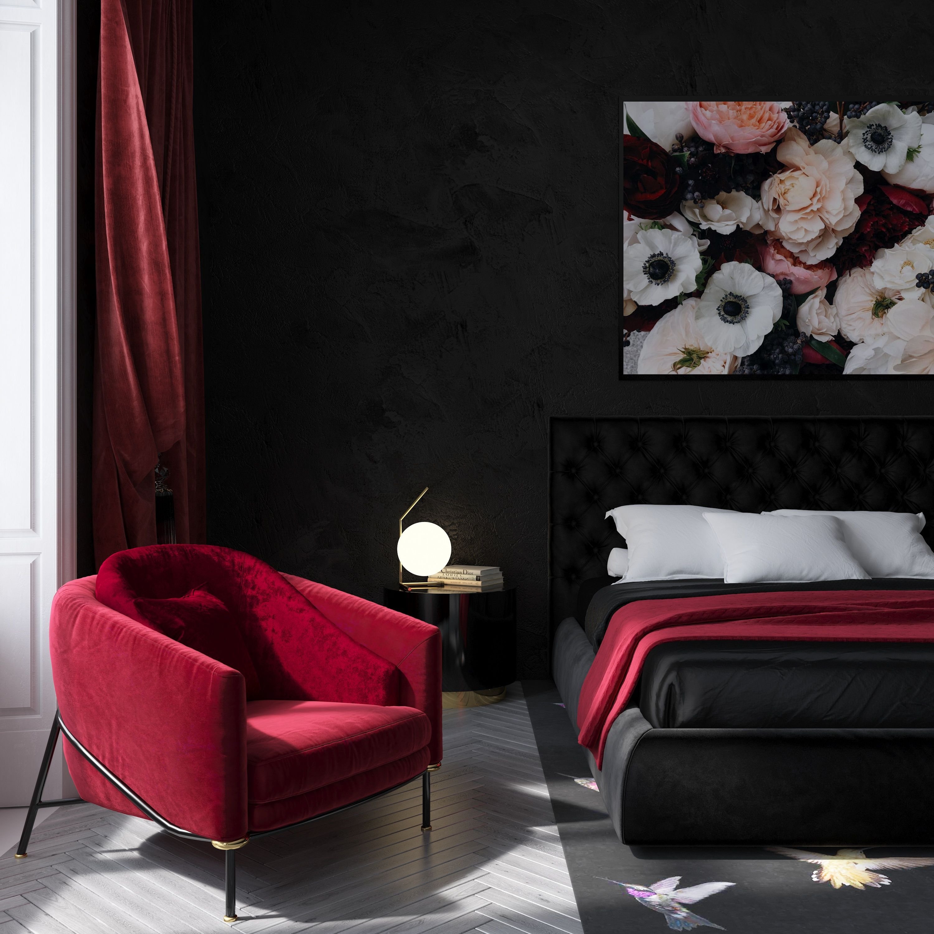 Спальня в красно черных тонах