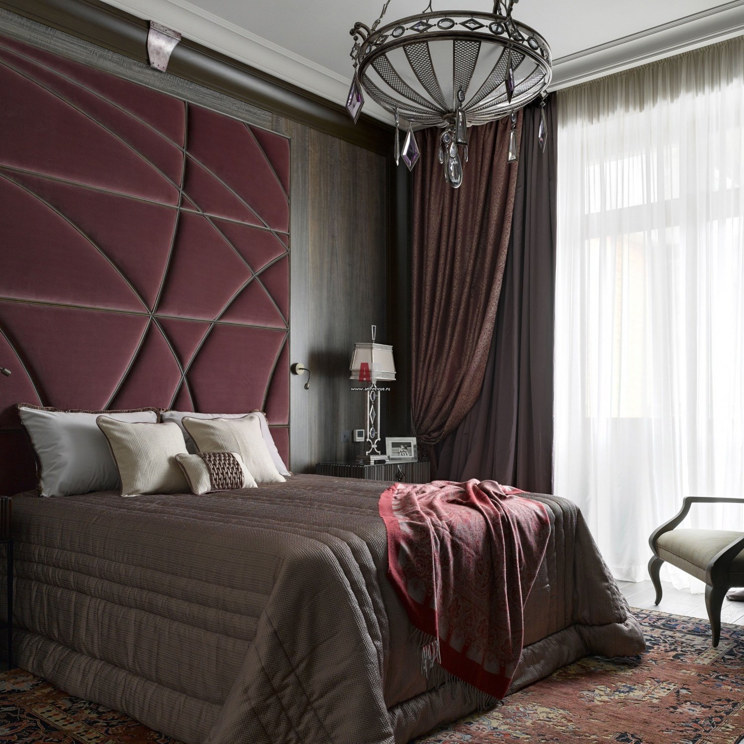Спальня в бордовых тонах