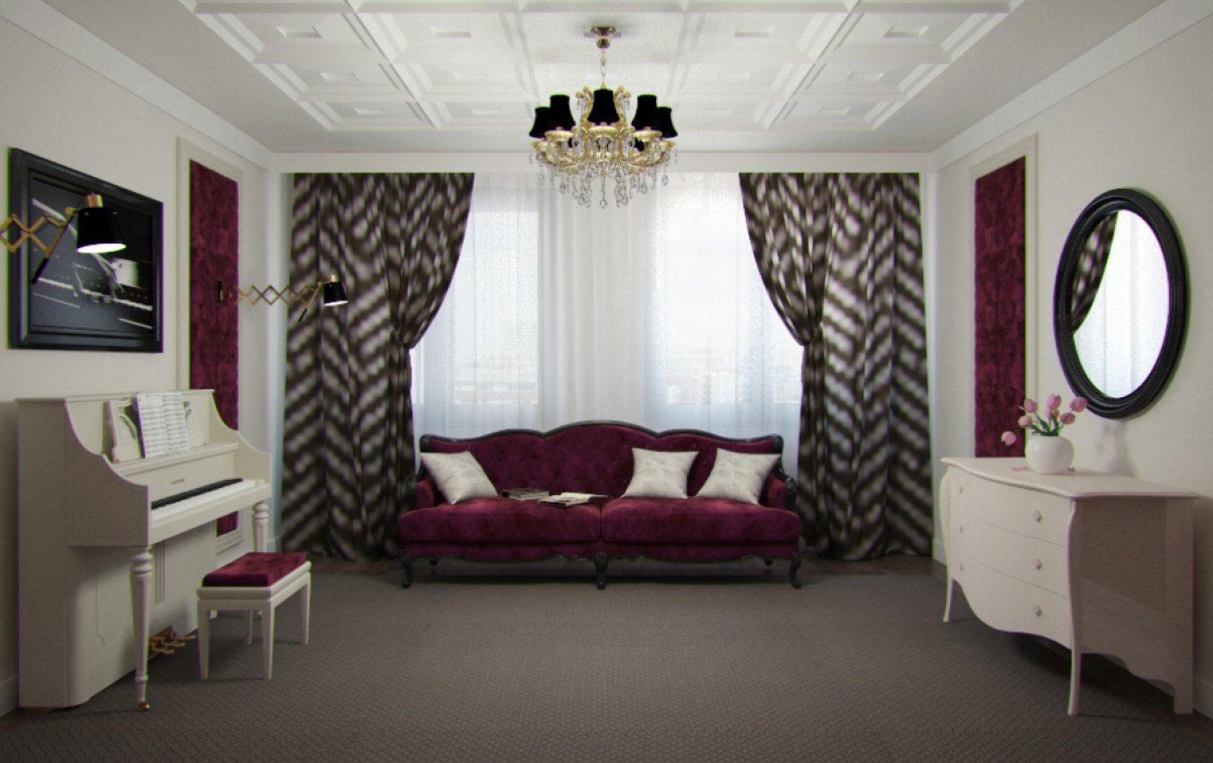 Интерьер гостиной с бордовыми акцентами