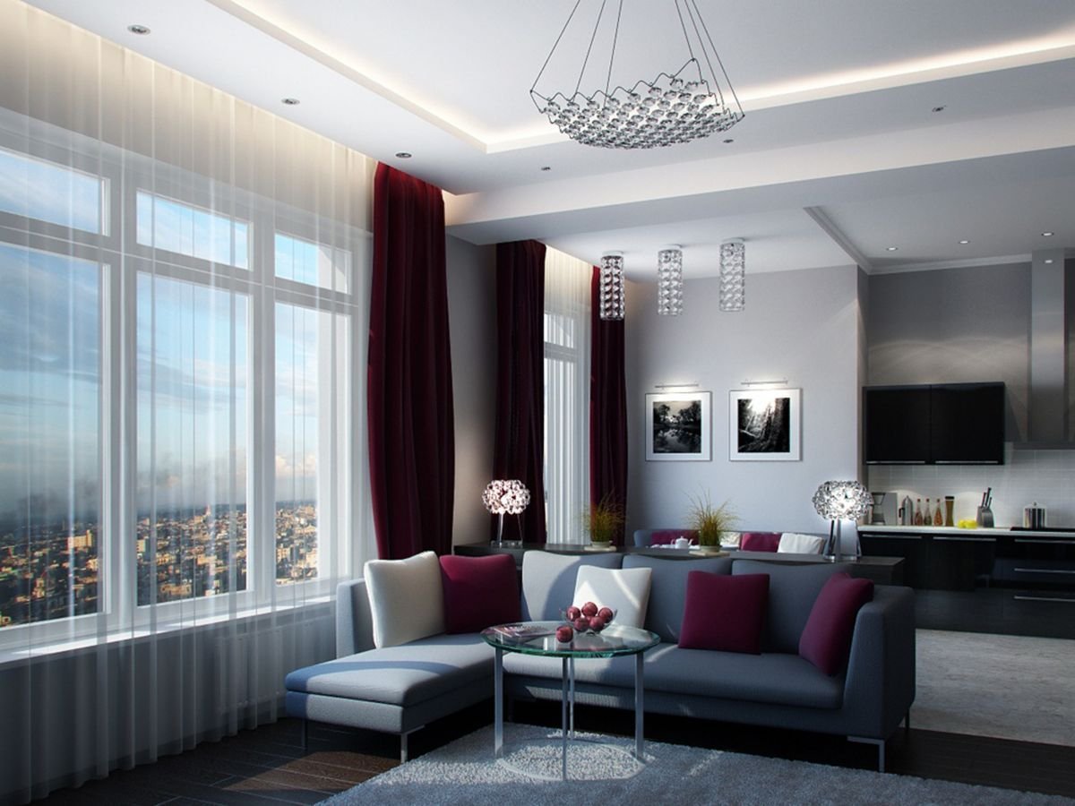 Сочетание цветов серый и бордовый в интерьере