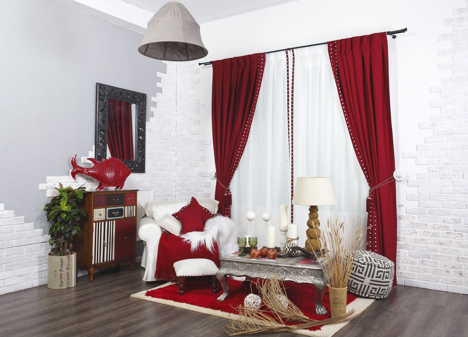 Красные шторы в интерьере