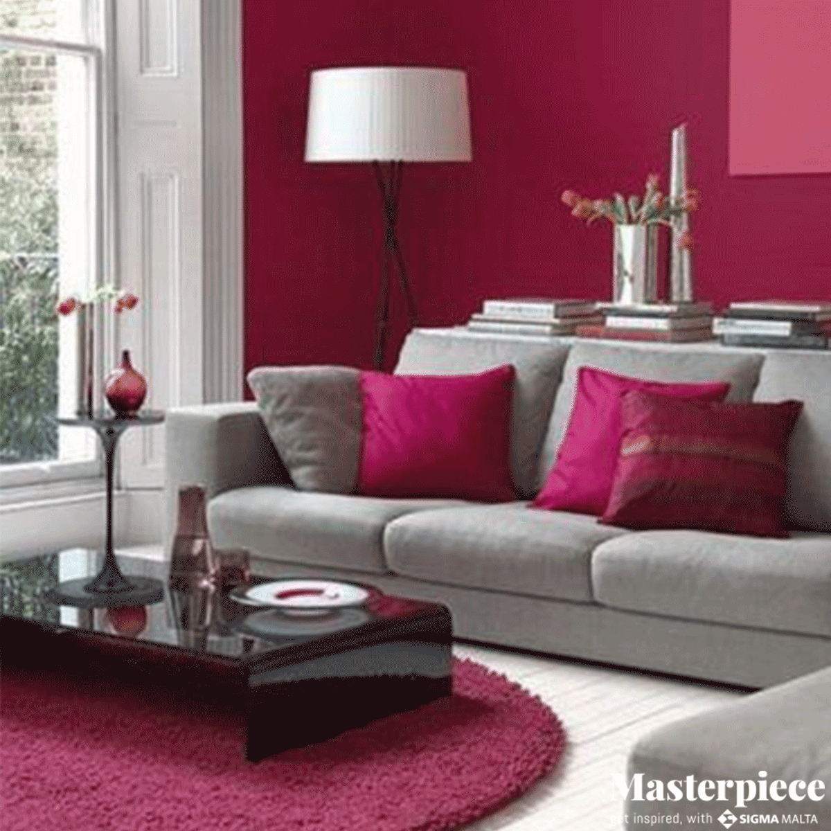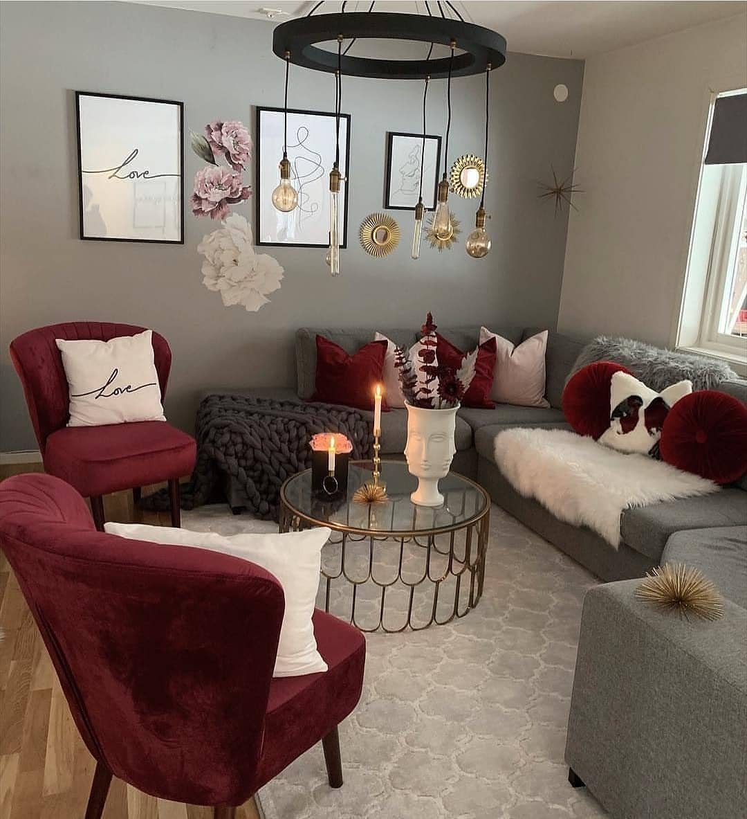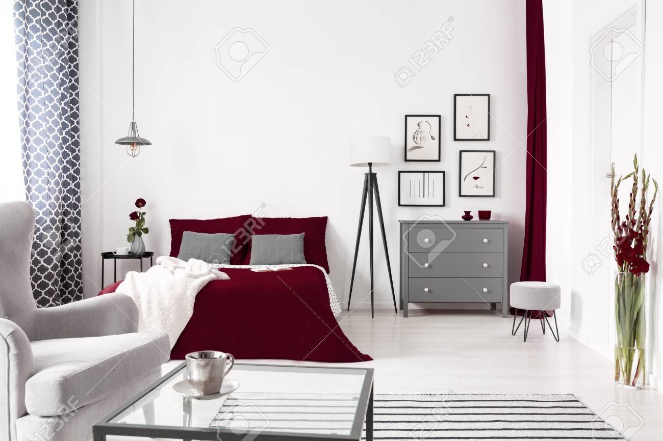 Сочетание серого и бордового в интерьере