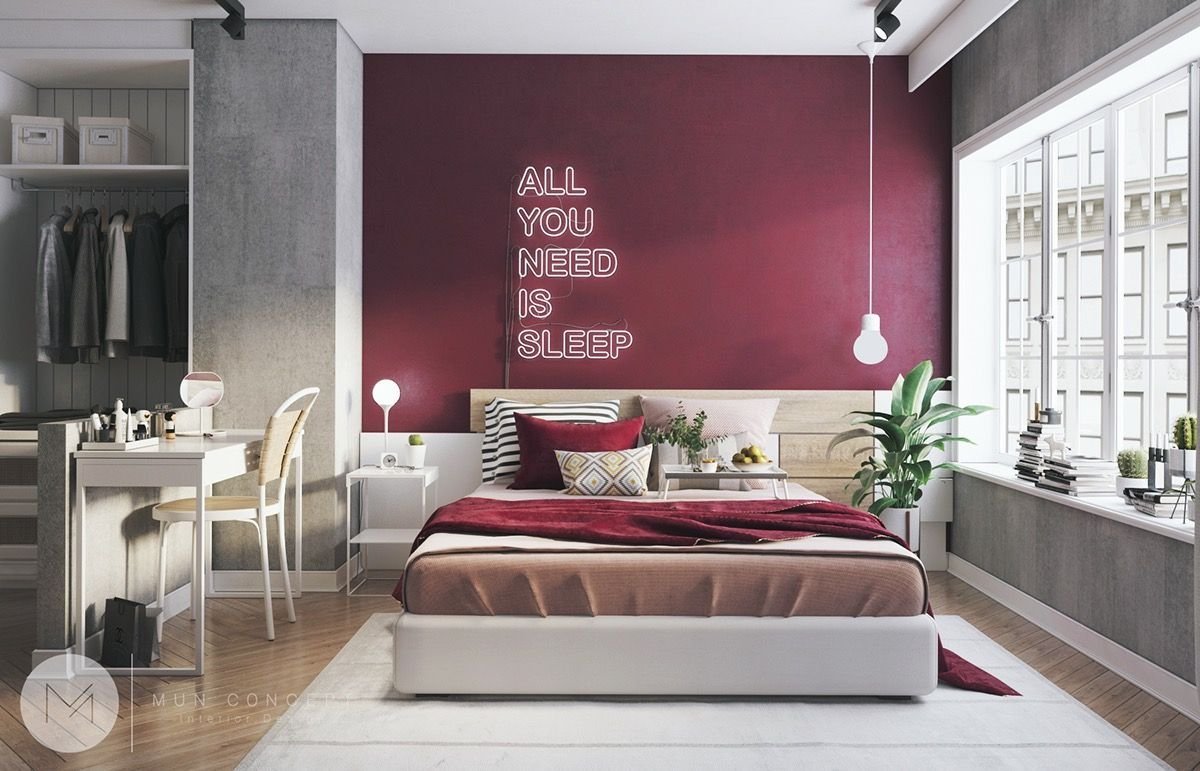 Спальня с бордовыми акцентами