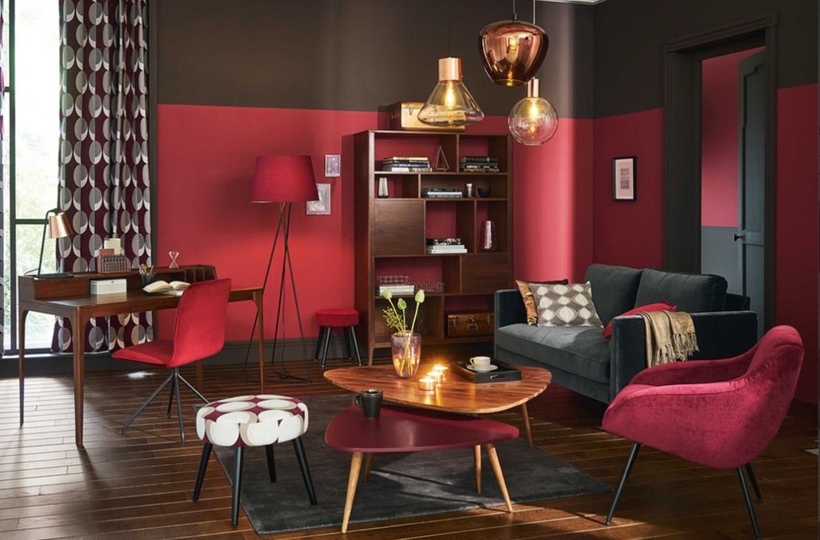 Красные стены в интерьере