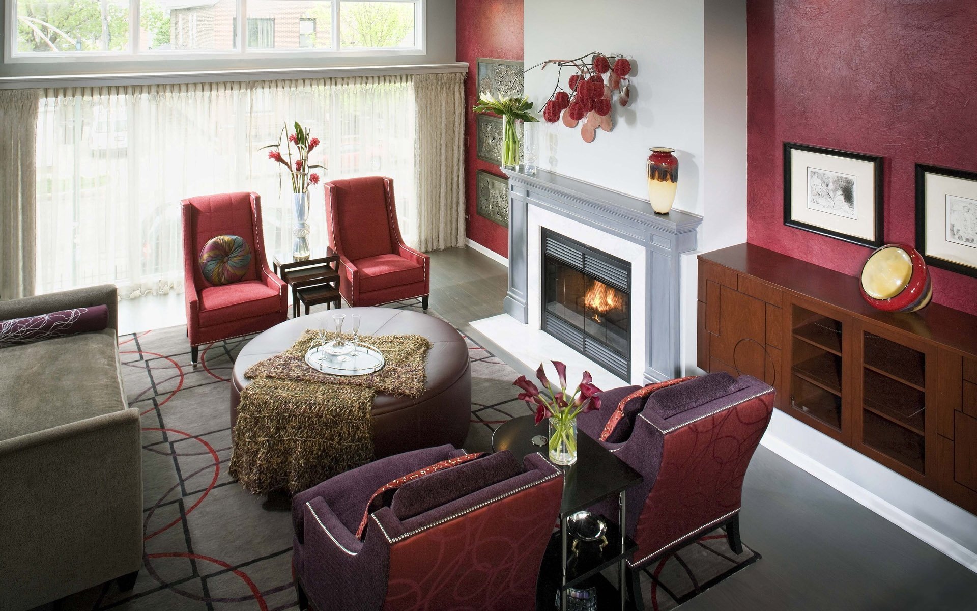 Гостиная в красных тонах