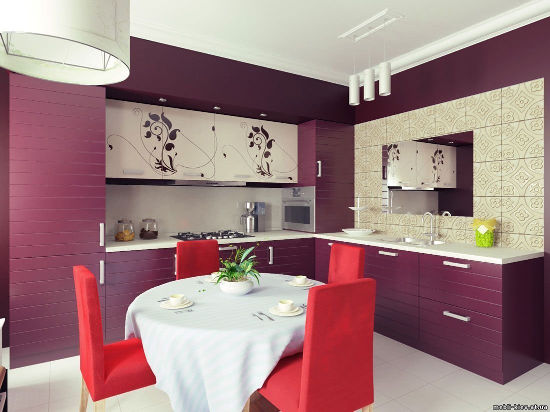 Сочетание цветов в интерьере кухни вишня