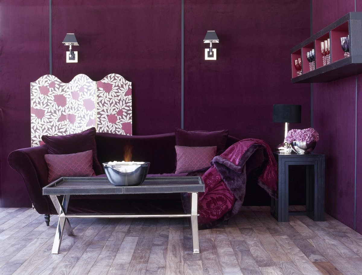 Сливовые стены в интерьере