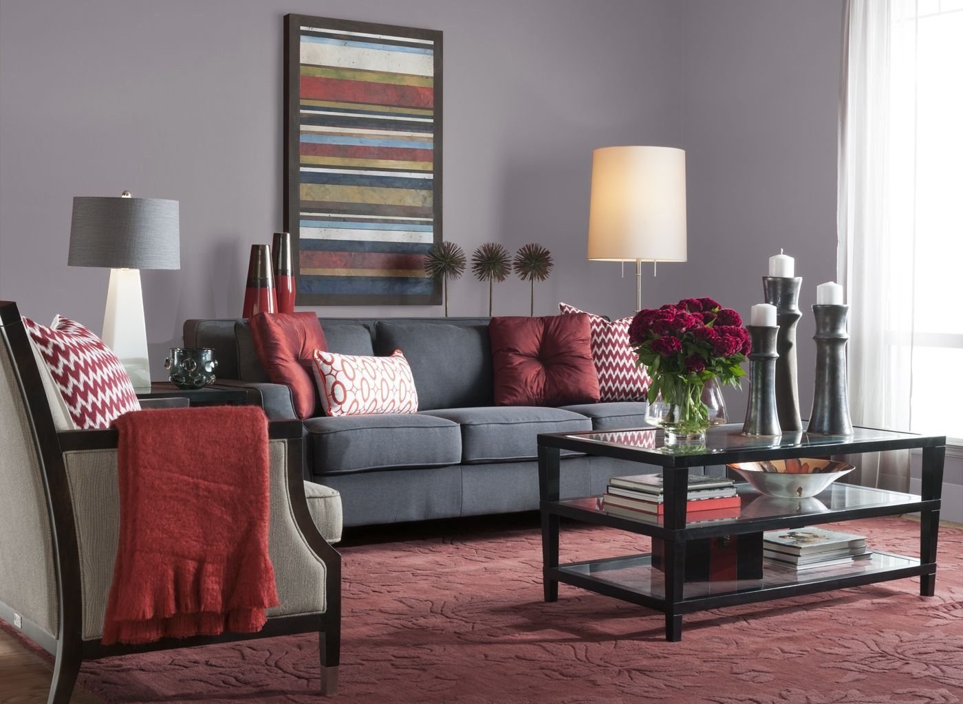 Серый и бордовый в интерьере