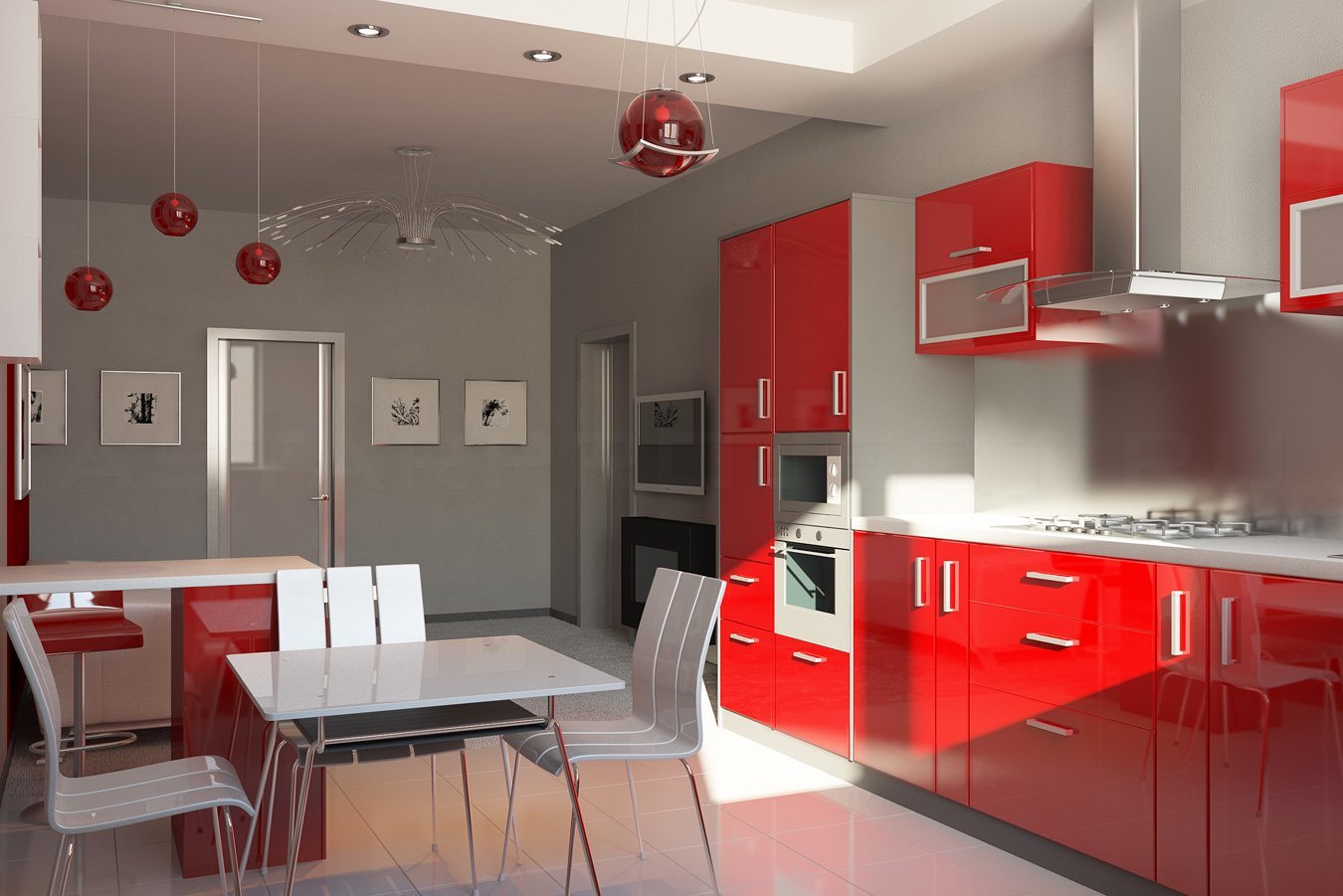 Красный кухонный гарнитур в интерьере