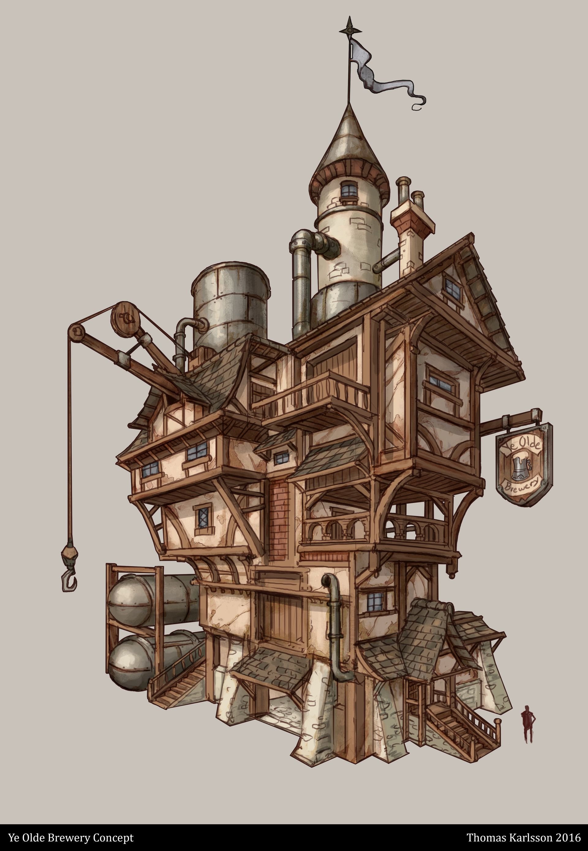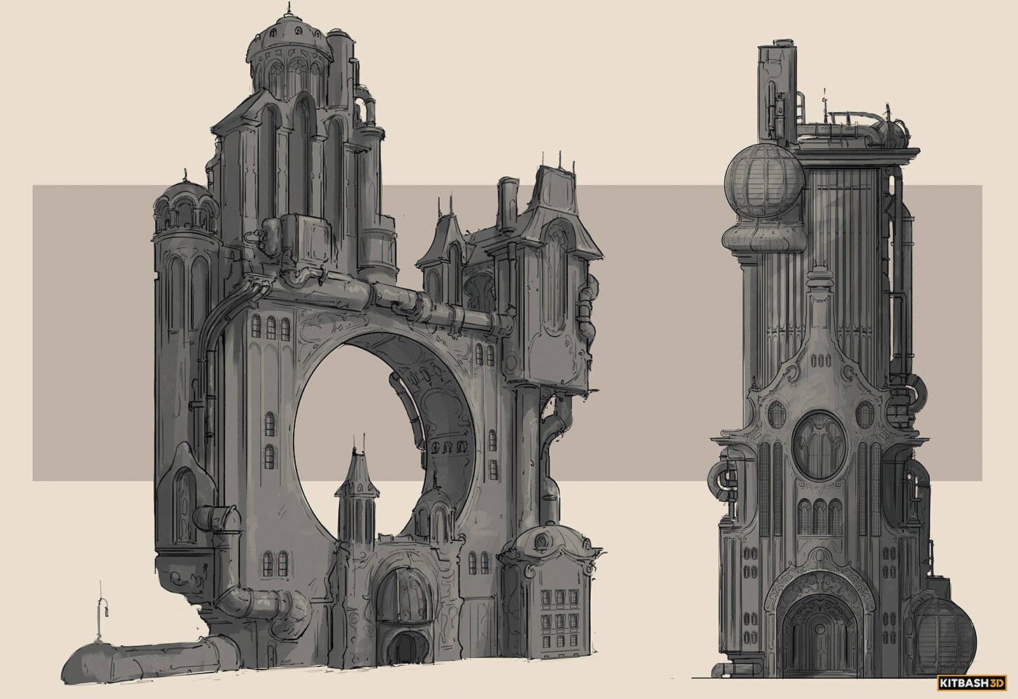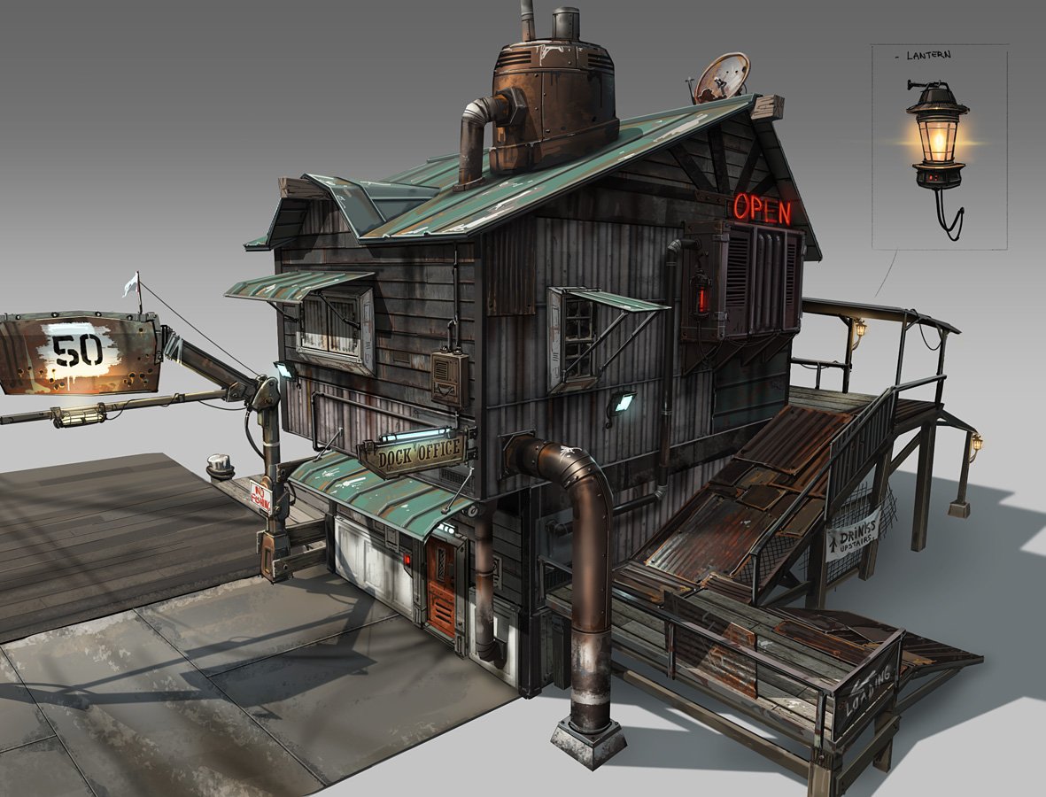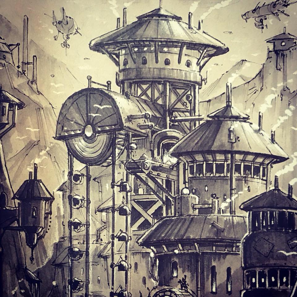 Концепт арты зданий стимпанк