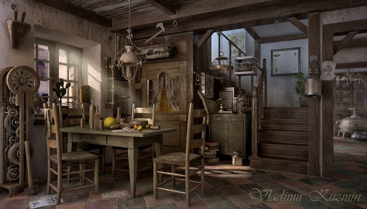 Стимпанк интерьер с викторианским стилем