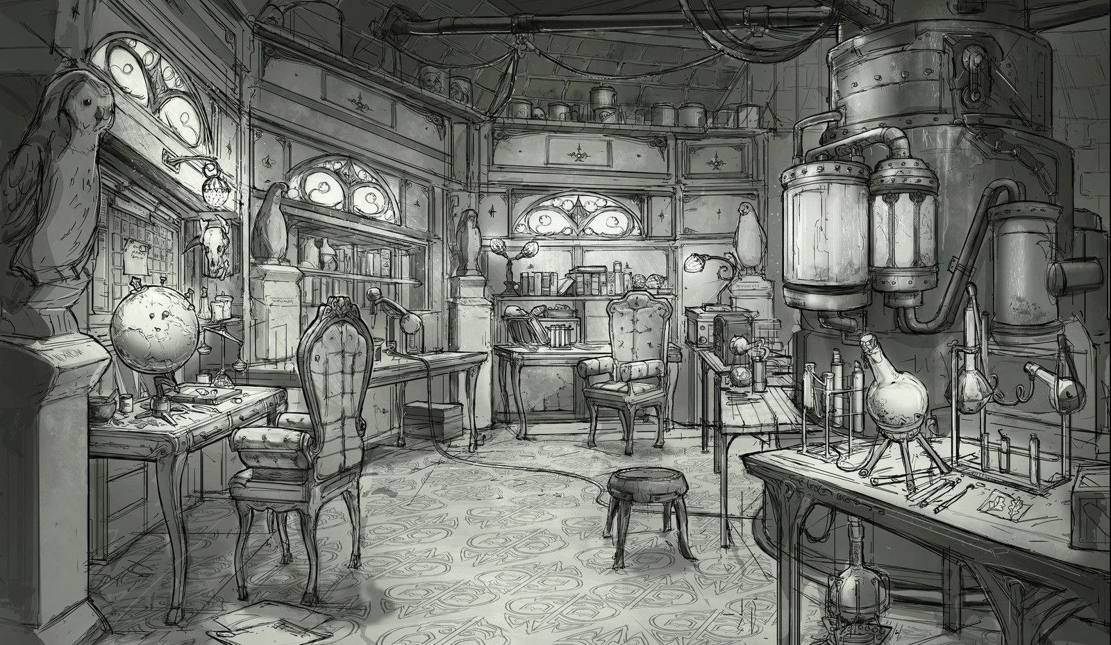 Алхимическая лаборатория стимпанк