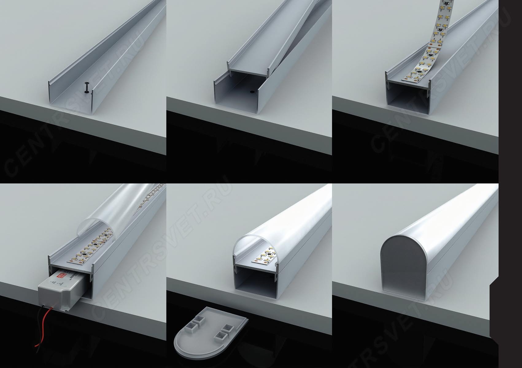 Накладной алюминиевый профиль для led ленты ll-2-alp010 под ленту до 10mm