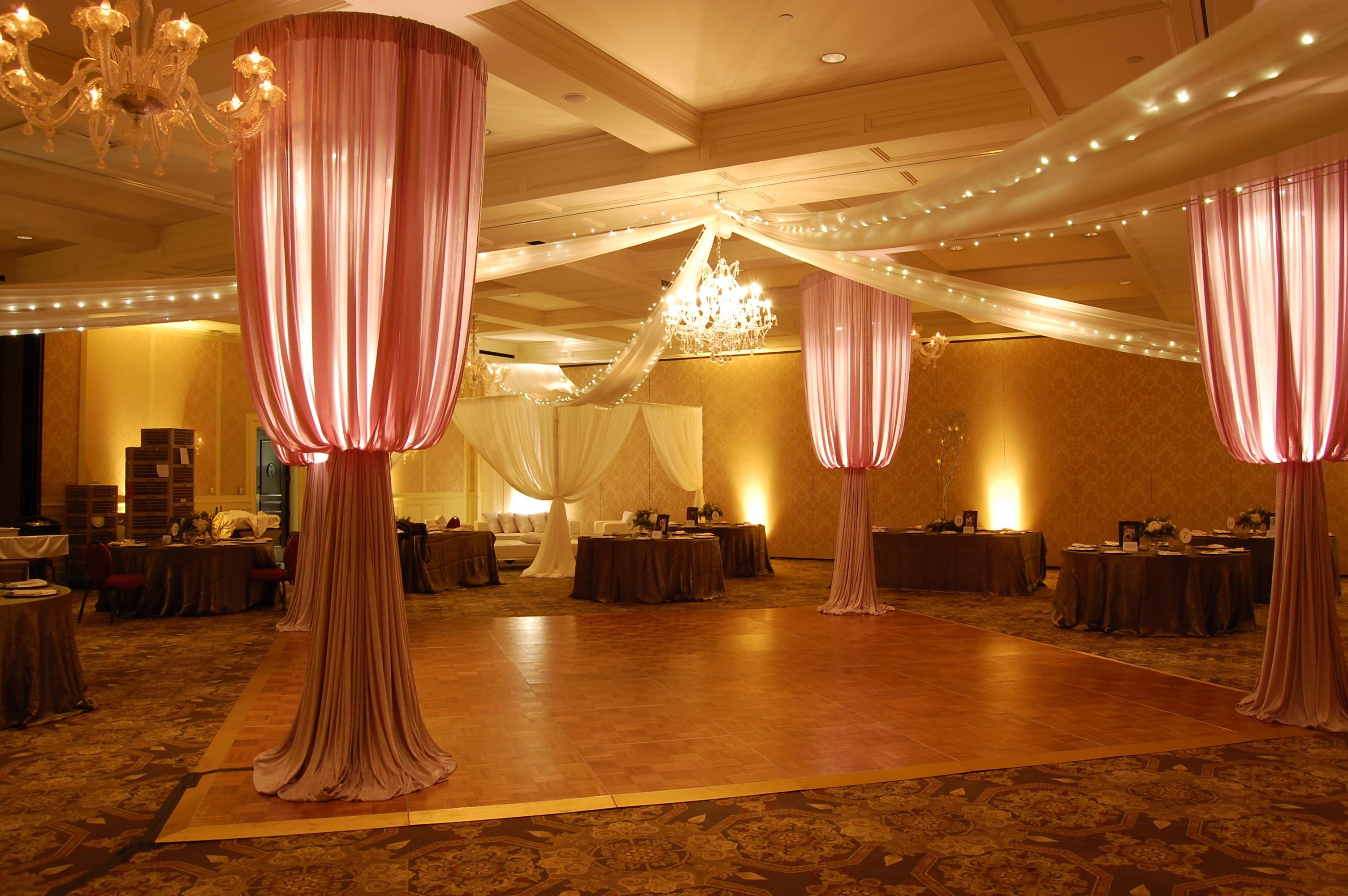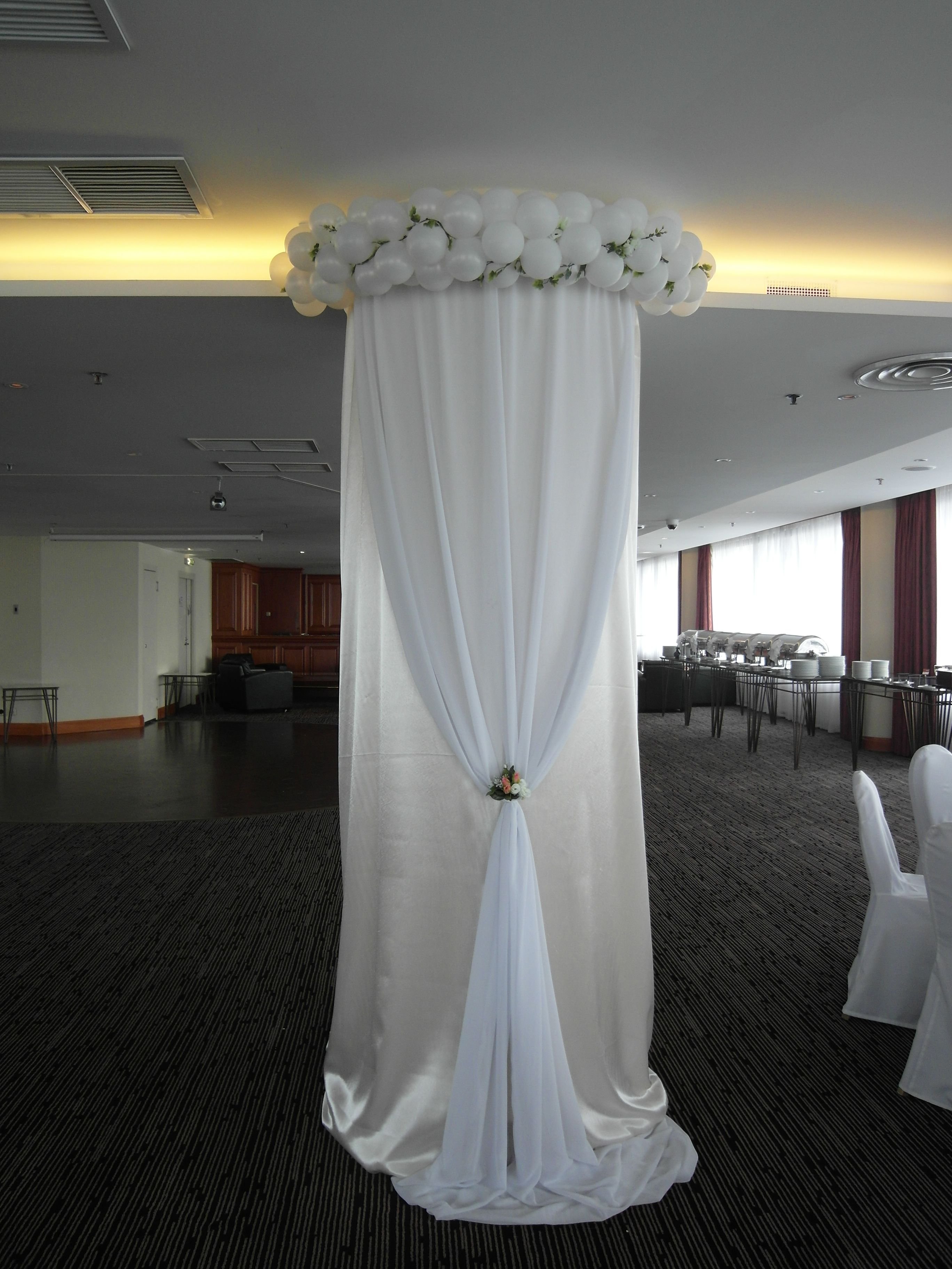 Украшение зала с колоннами на свадьбу
