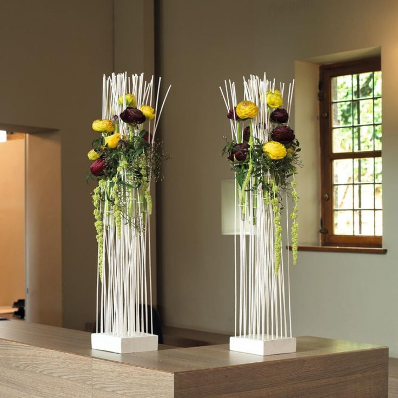 Напольные композиции из искусственных цветов для интерьера