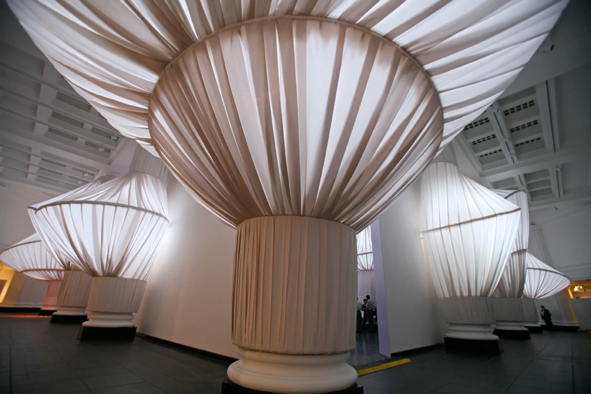 Украшение колонн тканью
