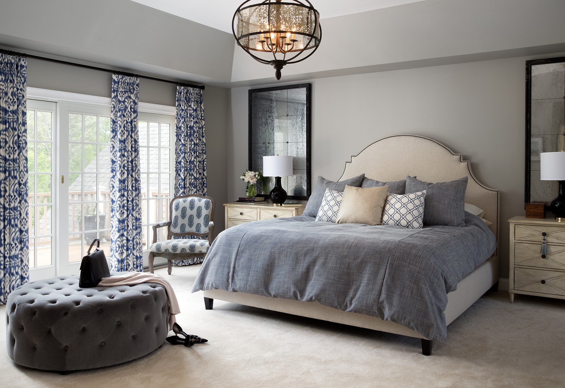 Спальня в сине бежевых тонах