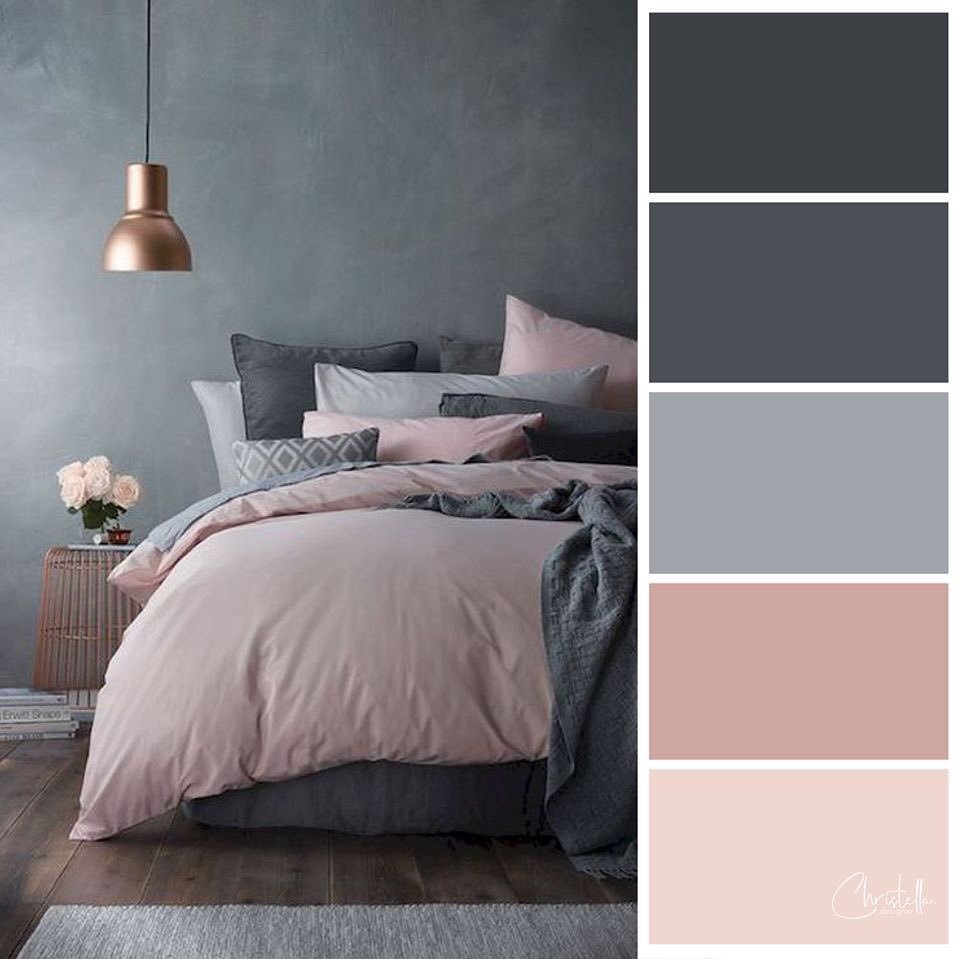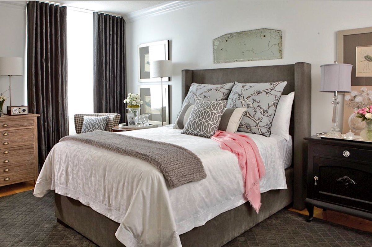Серо розовая спальня