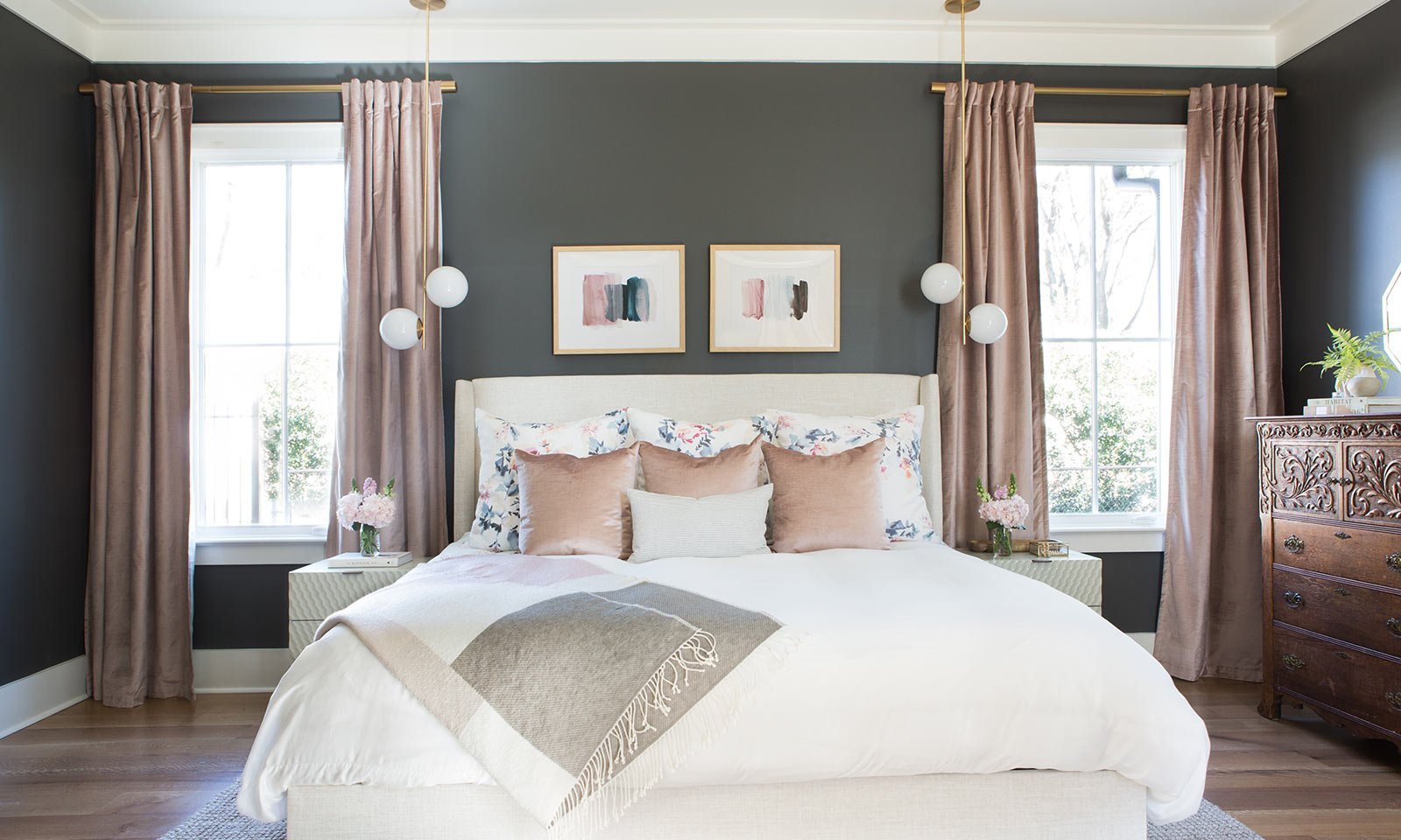 Спальня в серо пудровых тонах