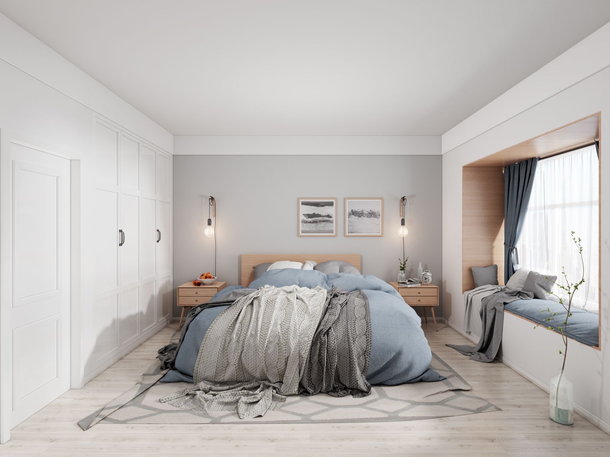 Серая спальня в скандинавском стиле