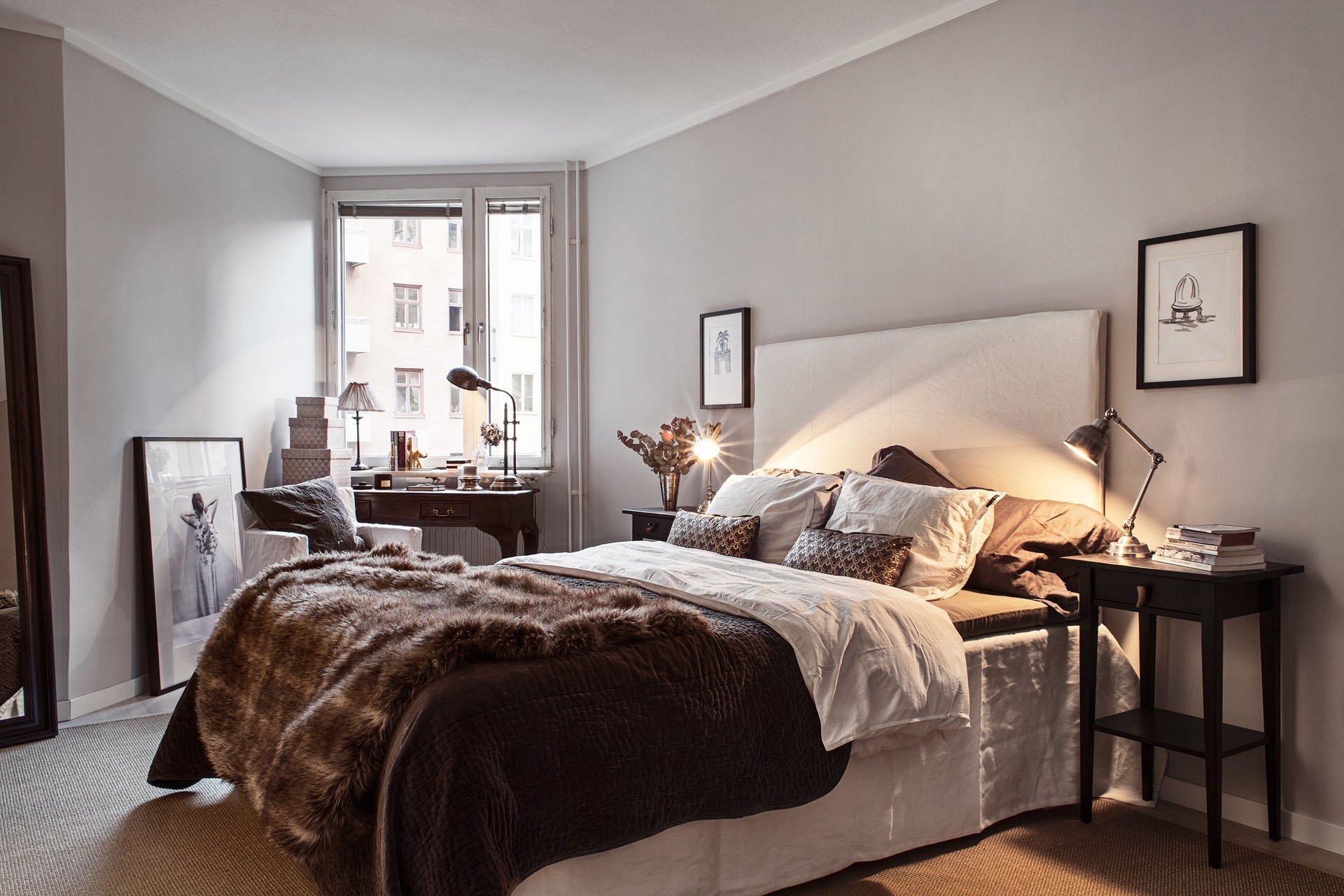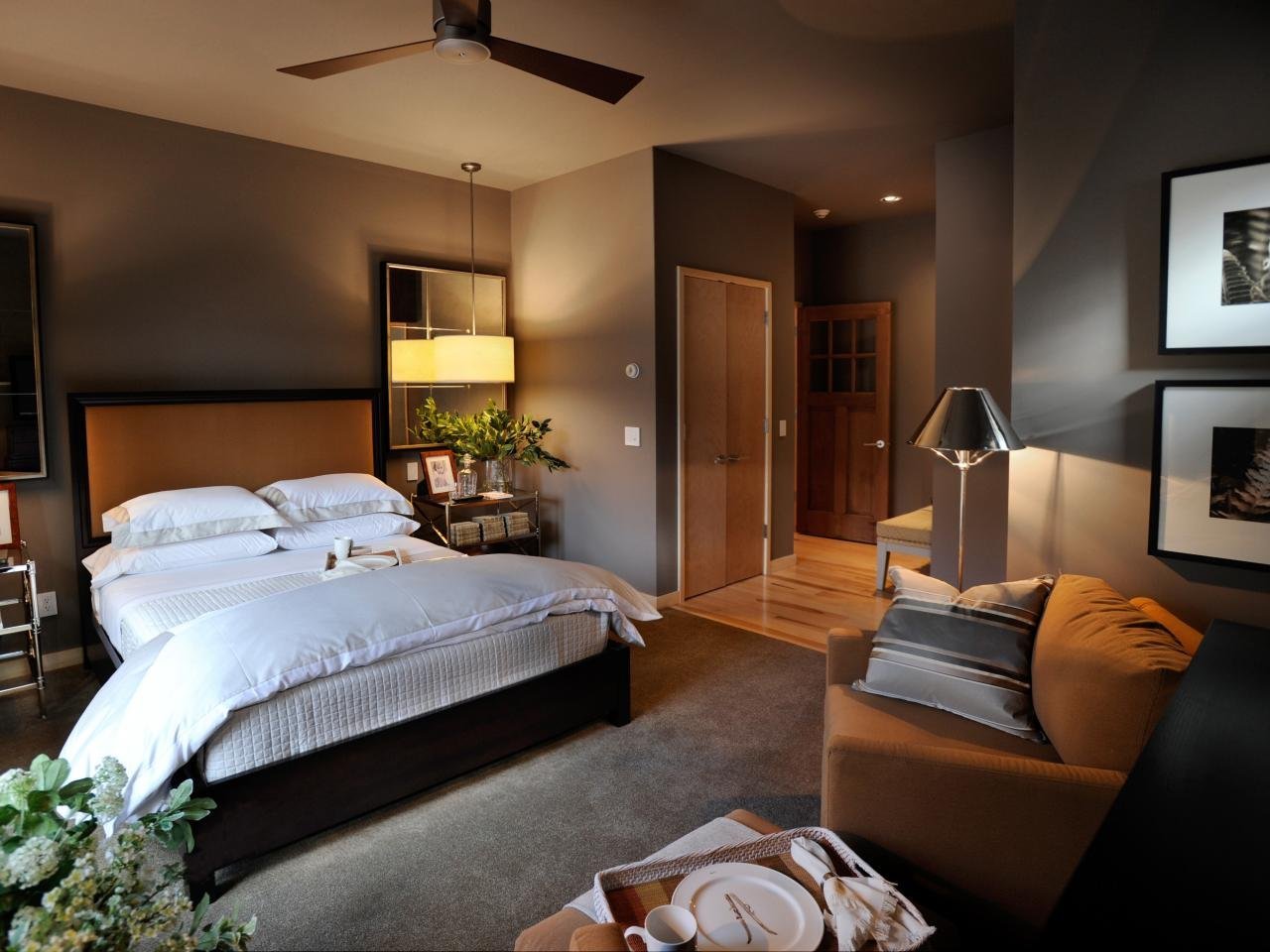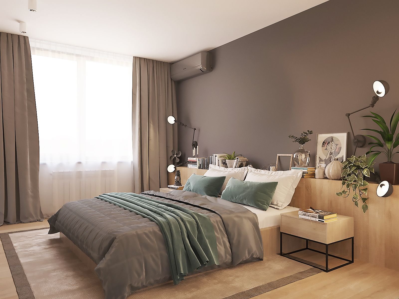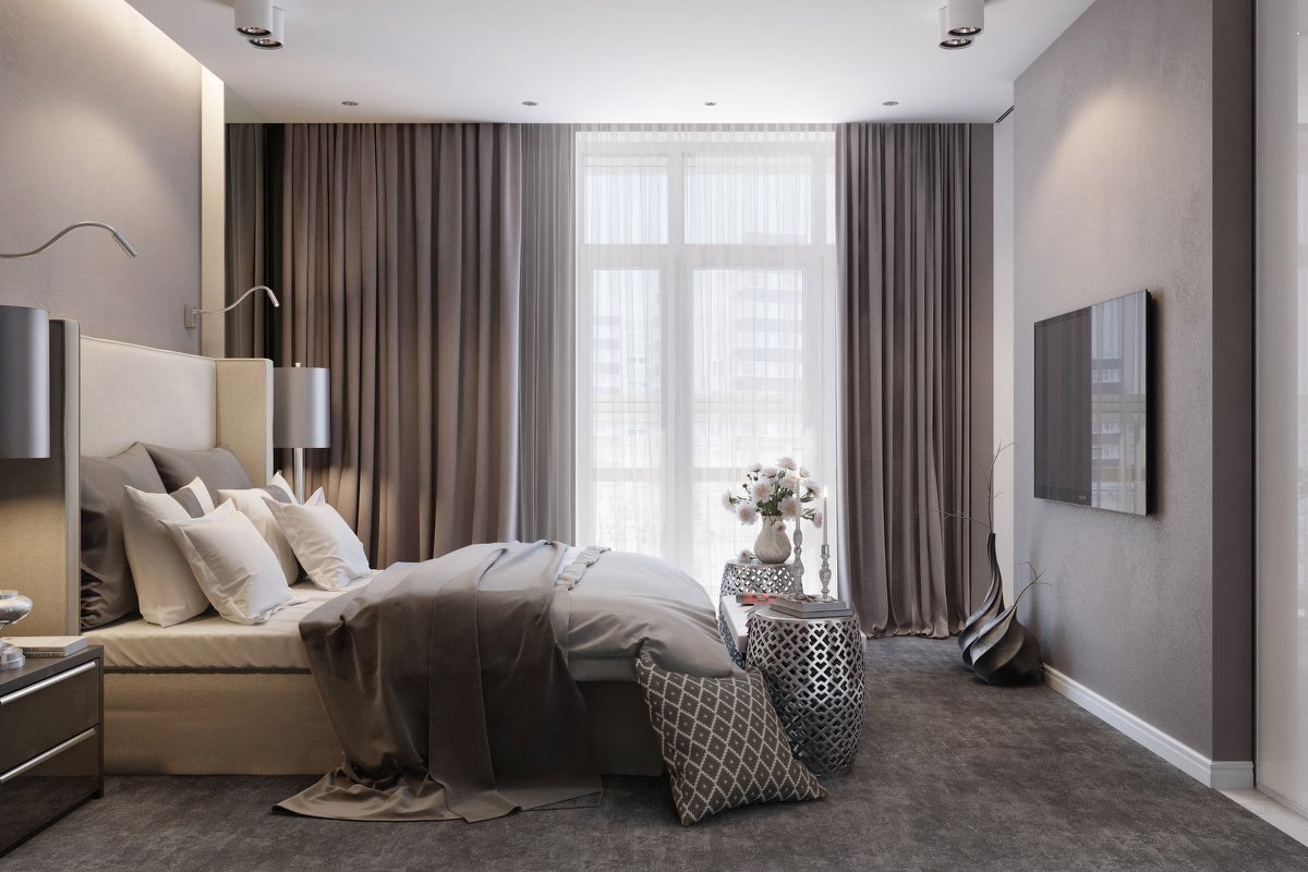 Серо коричневый цвет в интерьере спальни