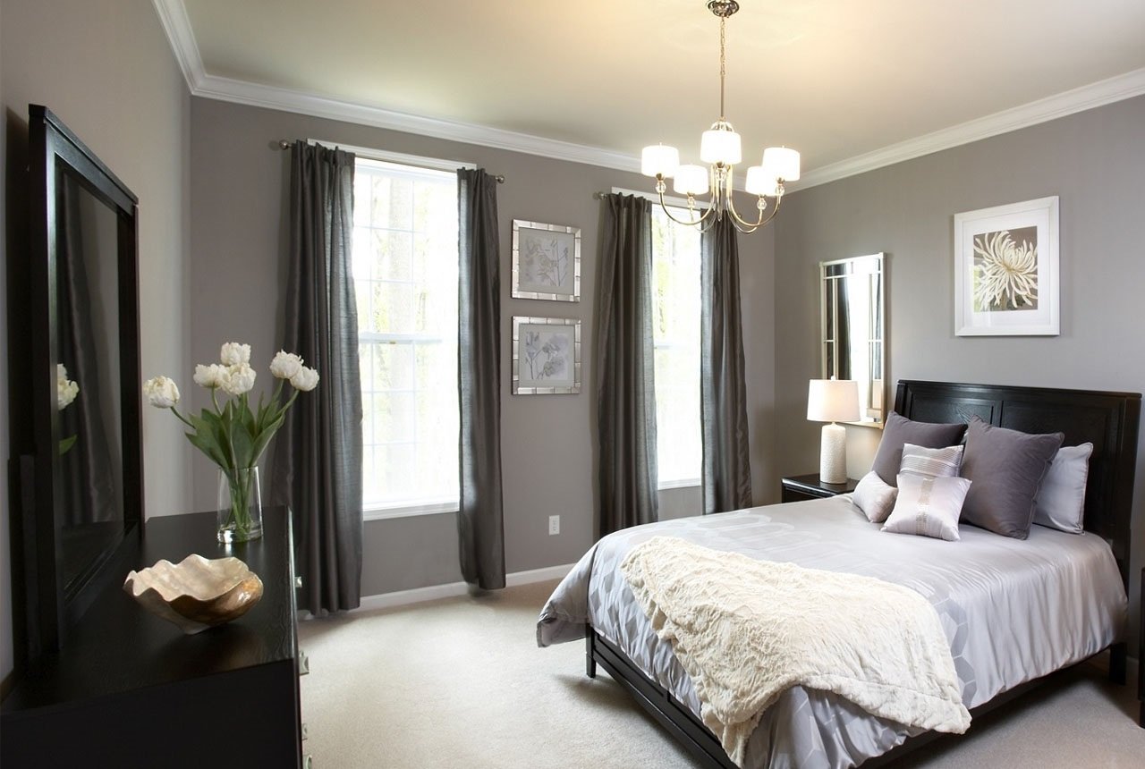 Серые стены в спальне