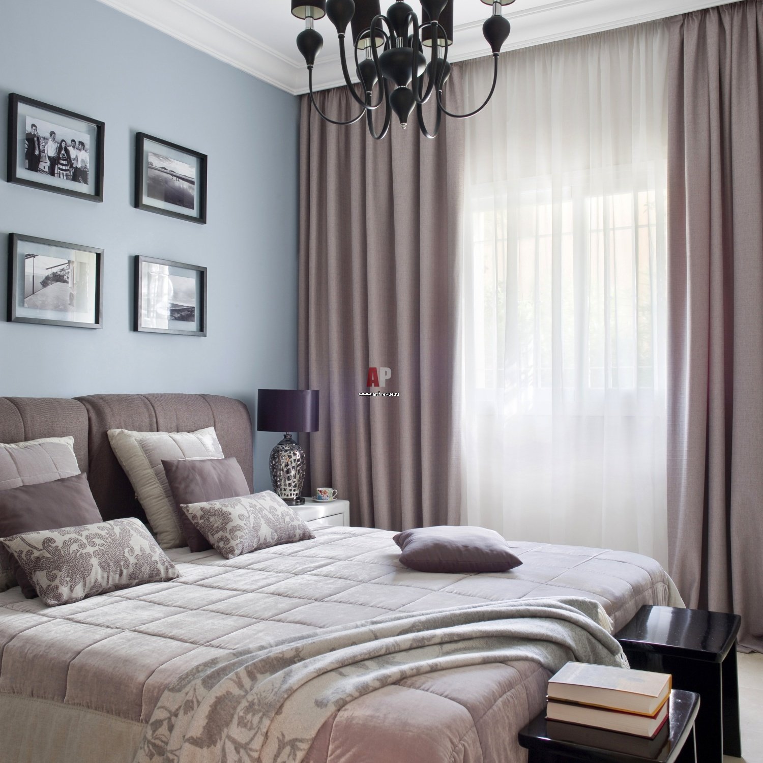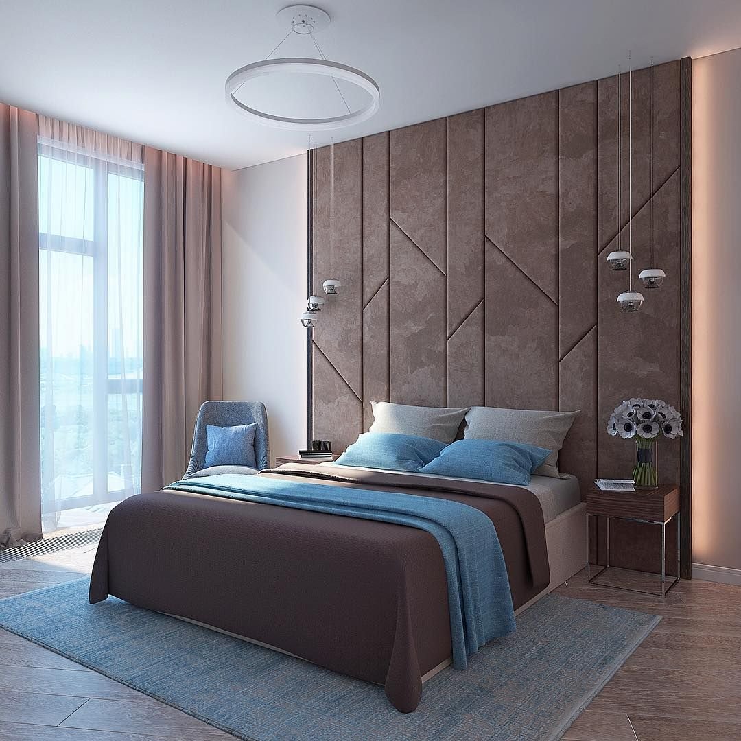 Коричнево голубая спальня