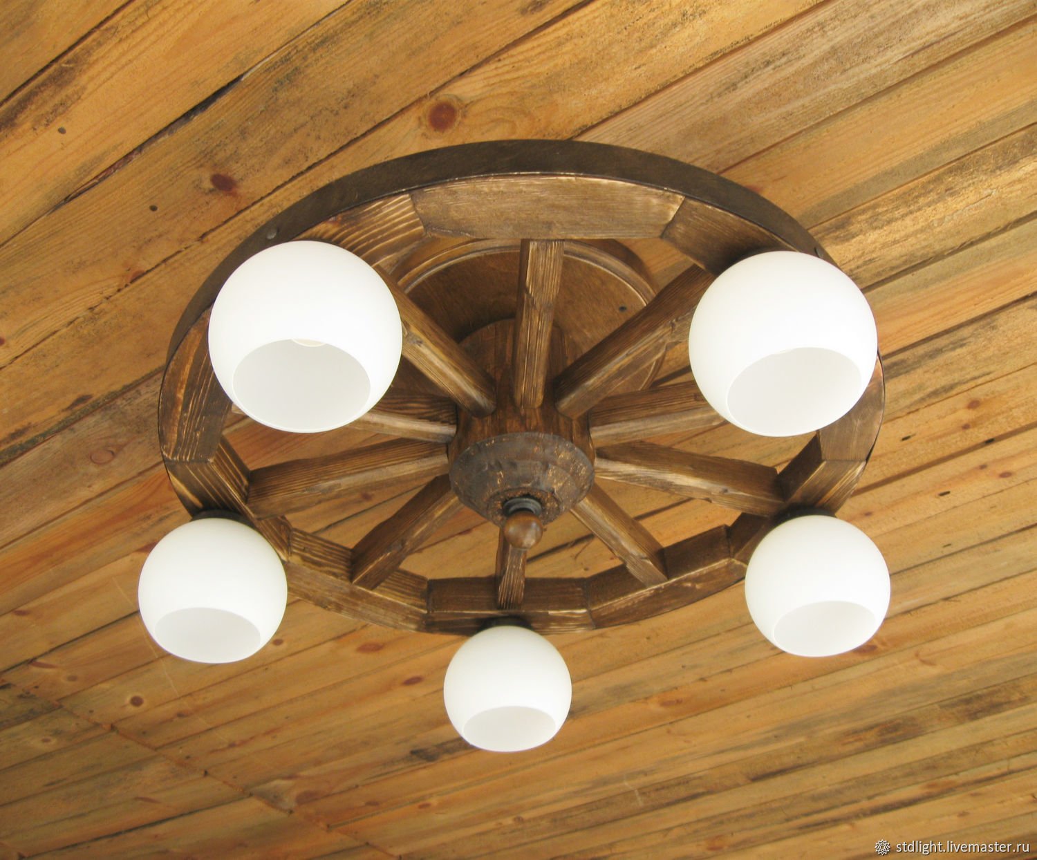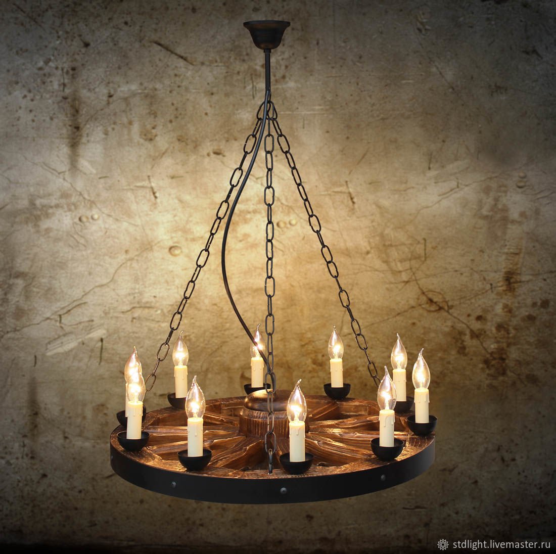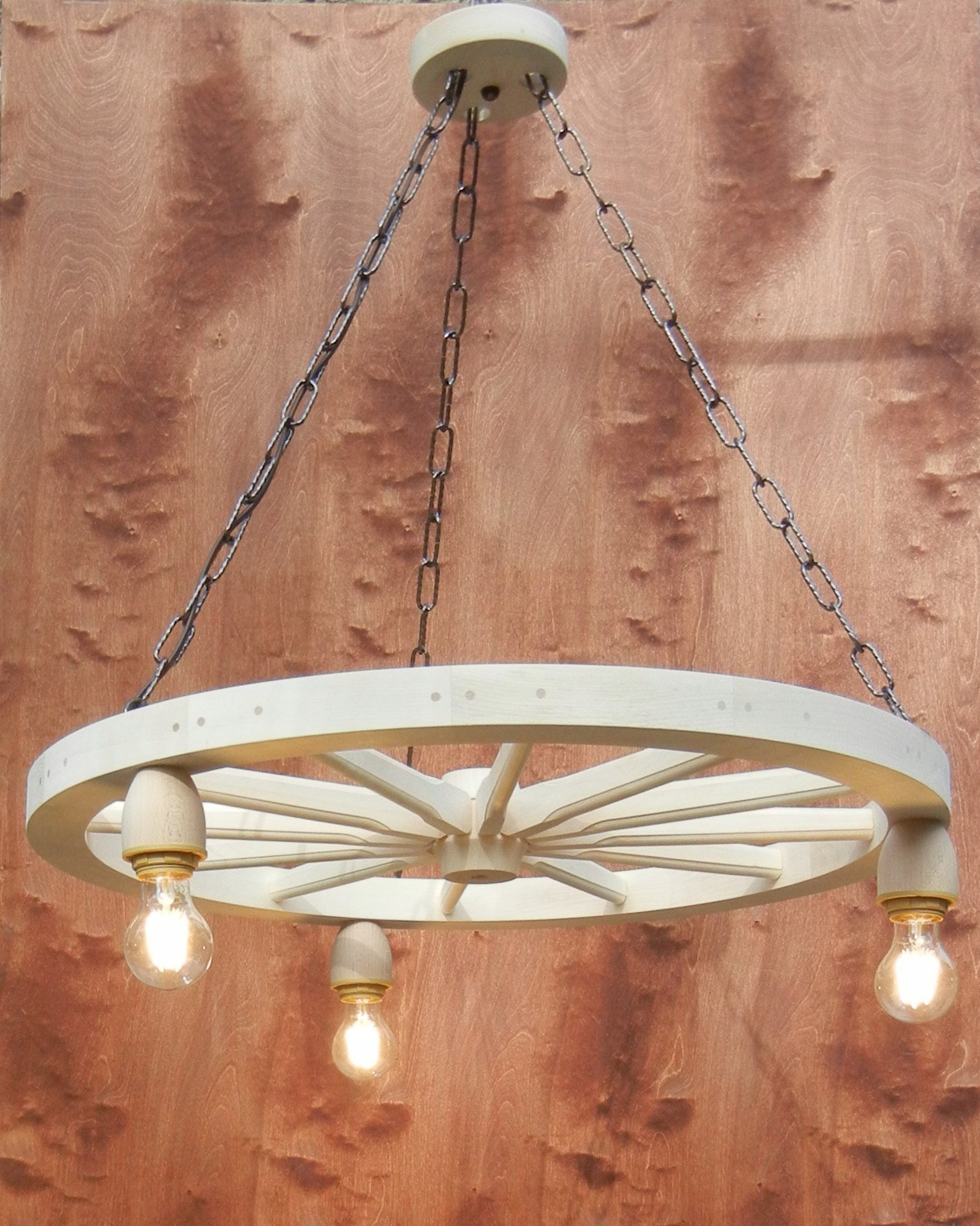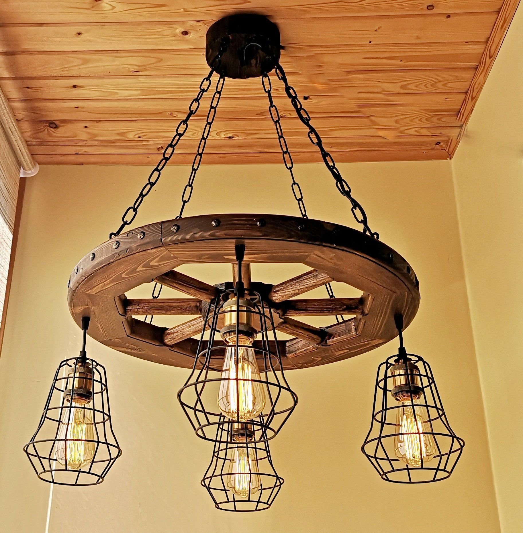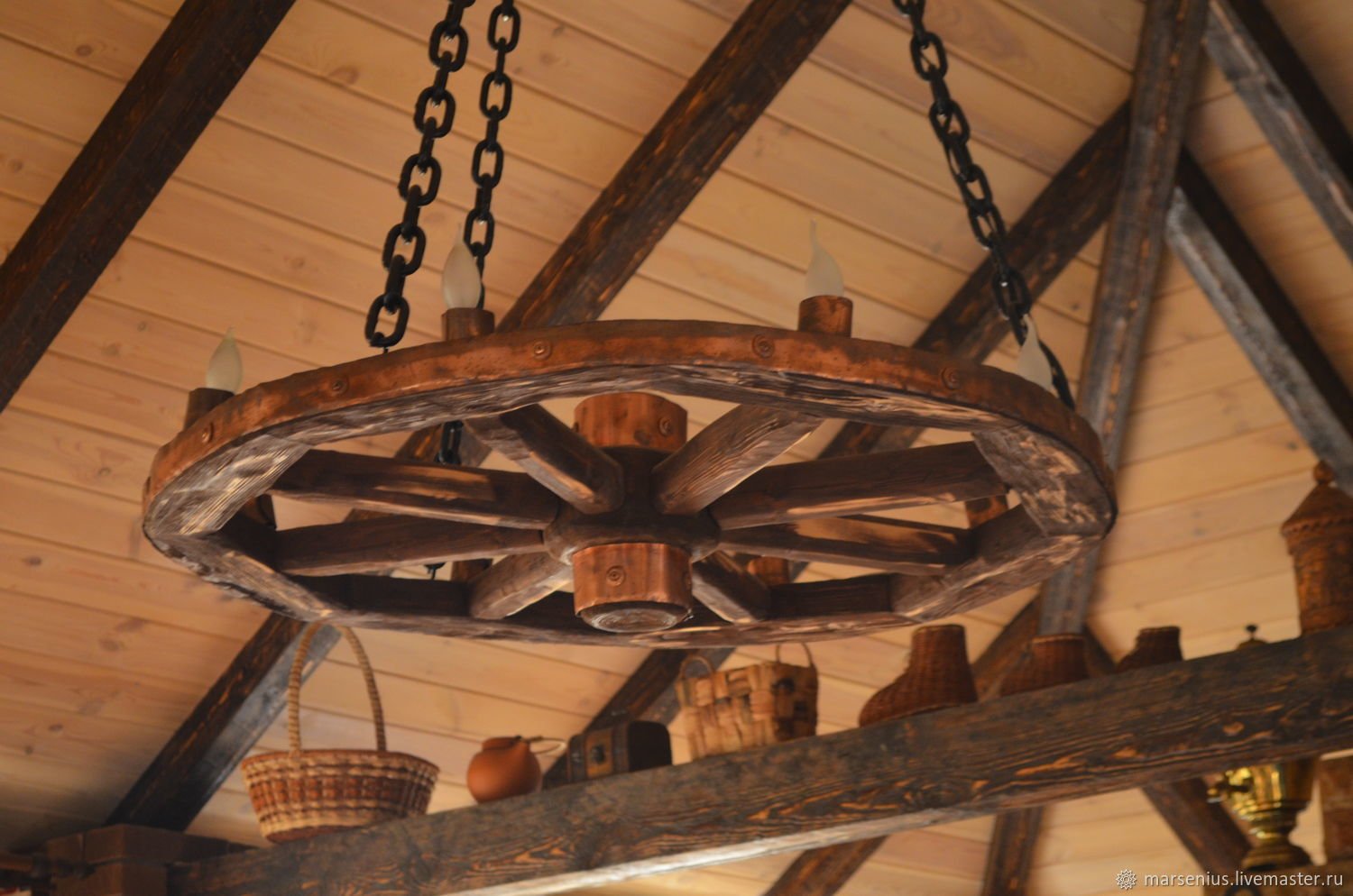 Люстра из деревянного колеса от телеги