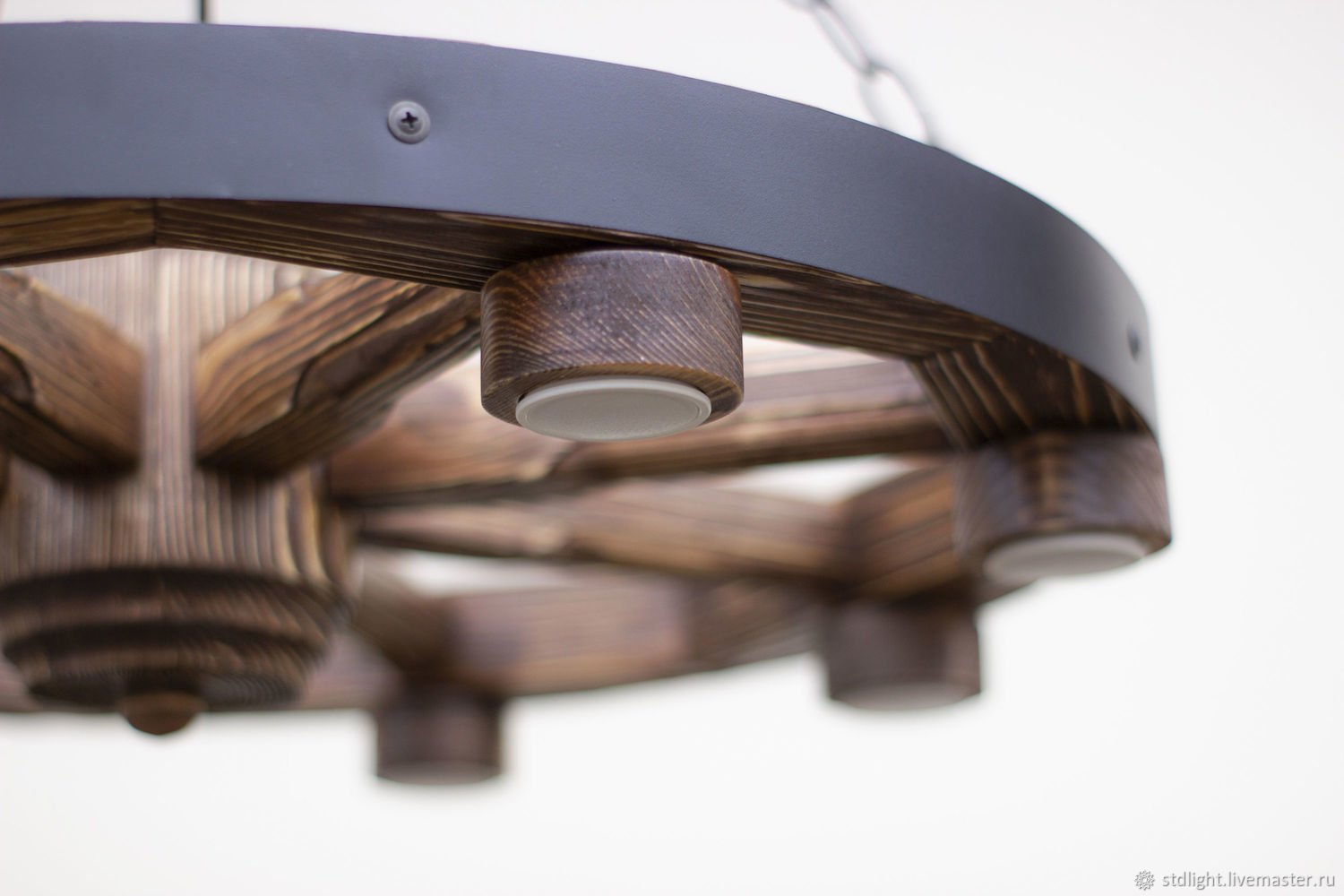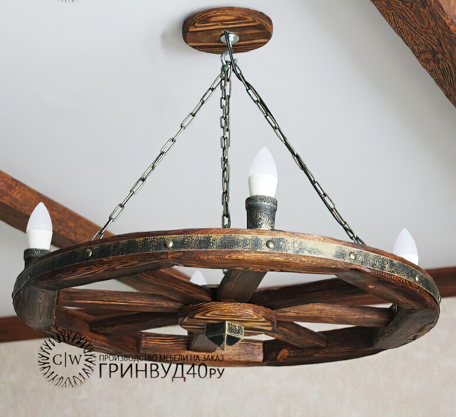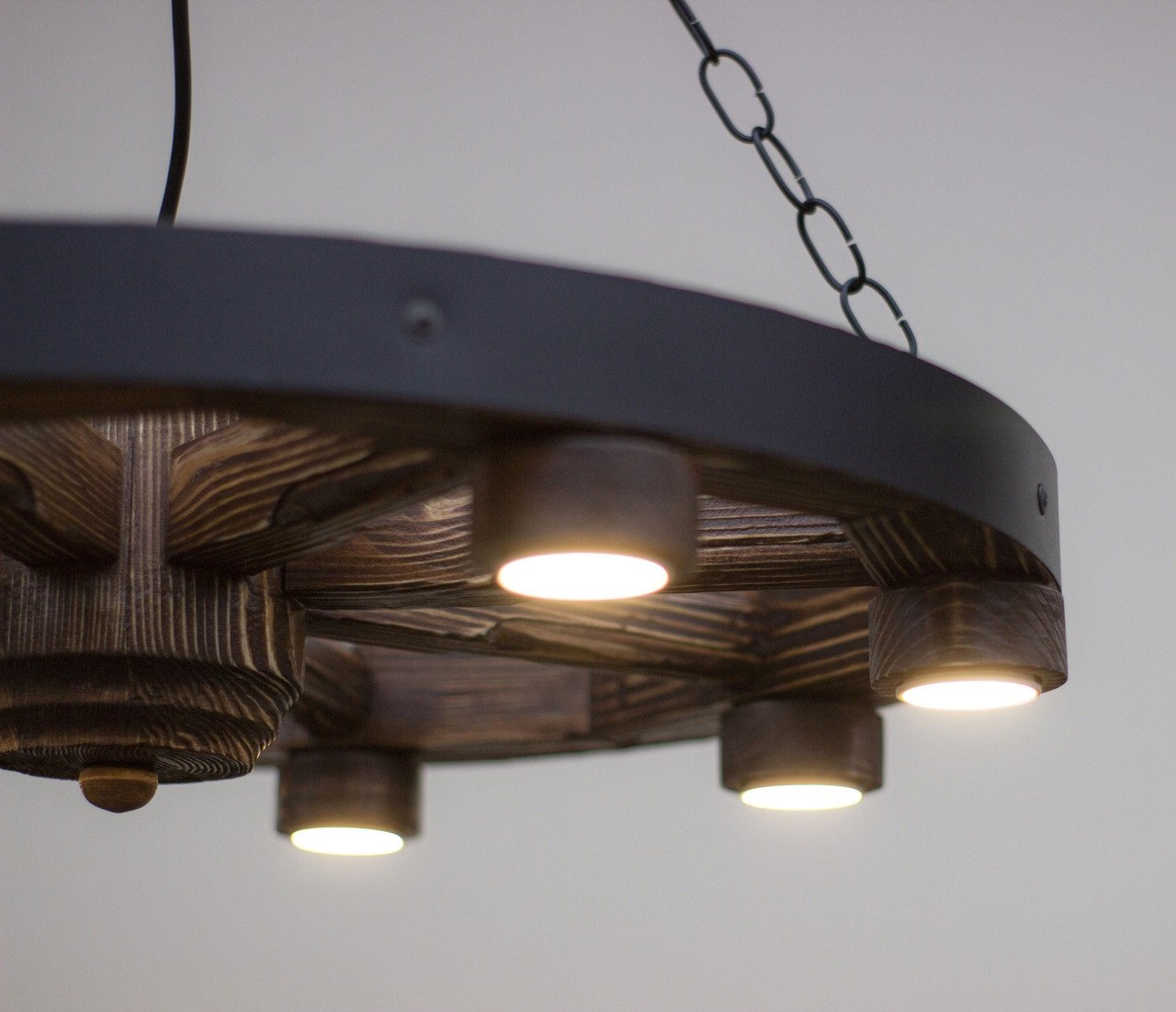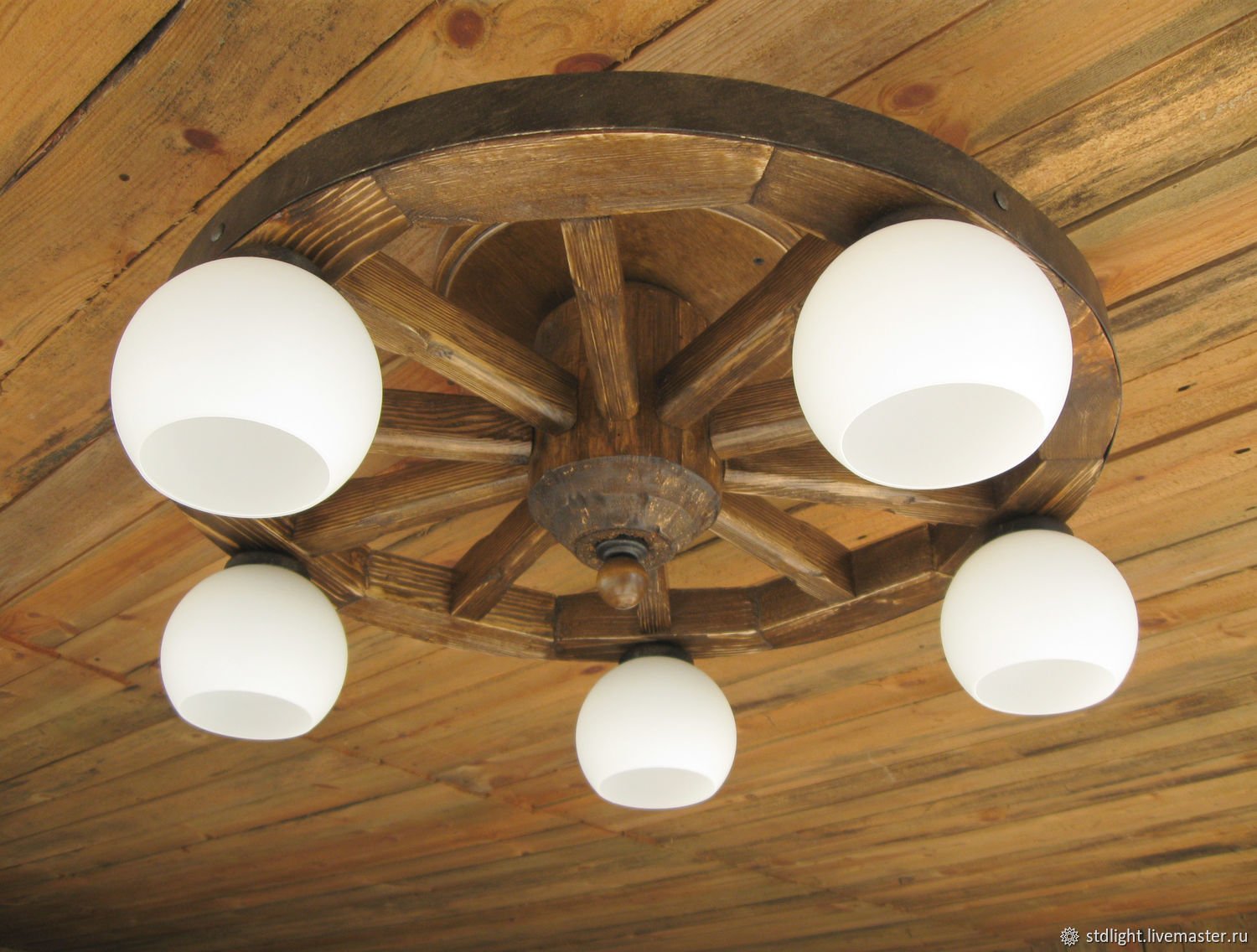 Люстра из деревянного колеса от телеги