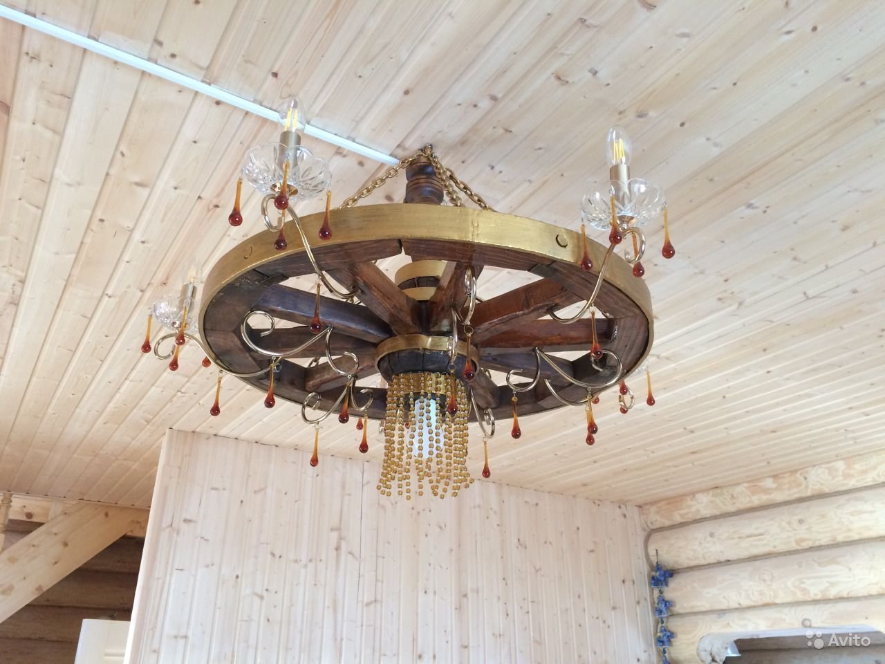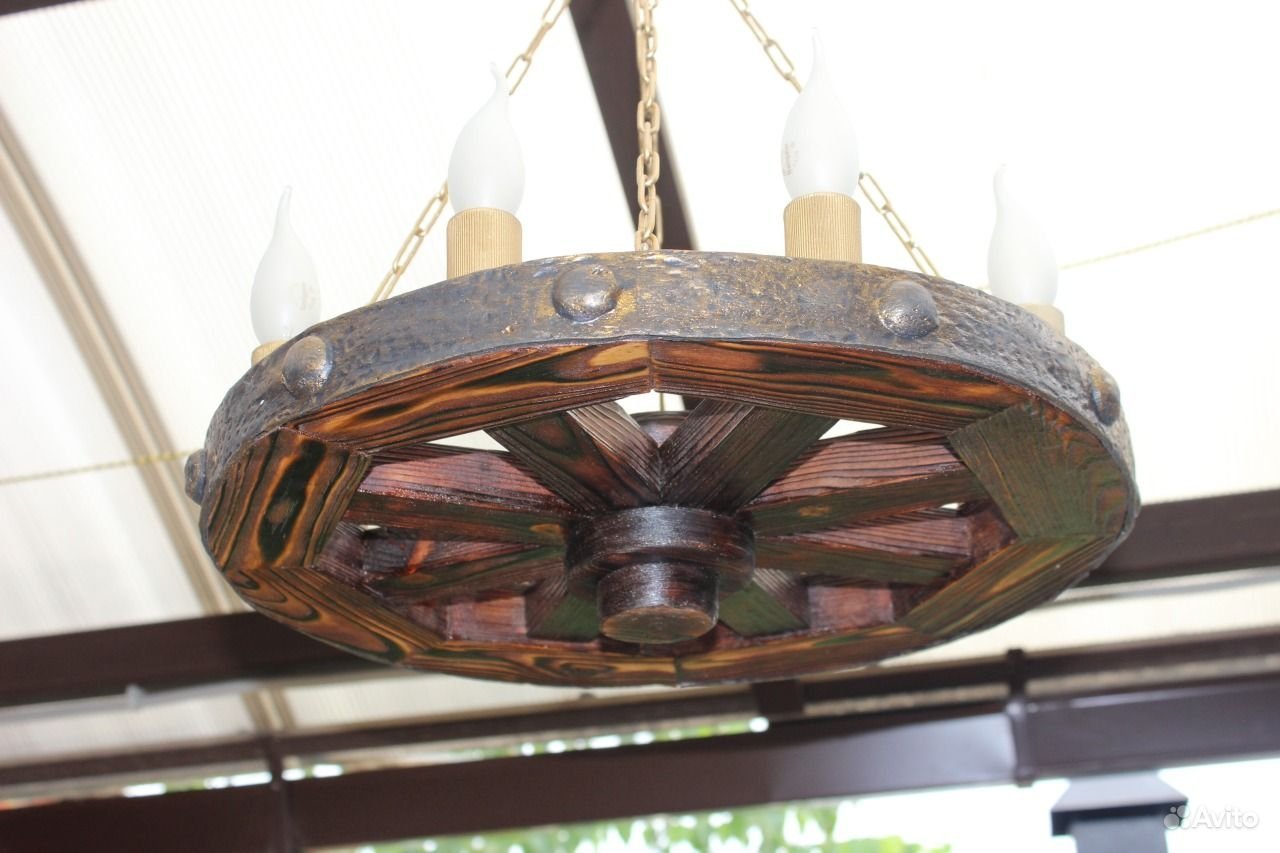 Люстра из колеса от телеги купить на авито