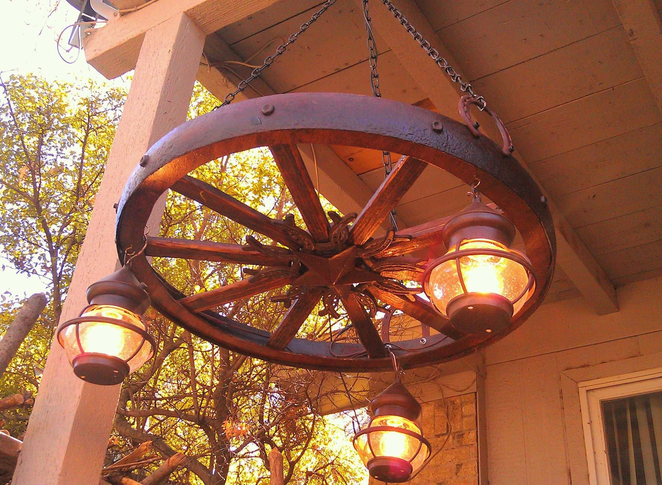 Люстра колесо от телеги для улицы