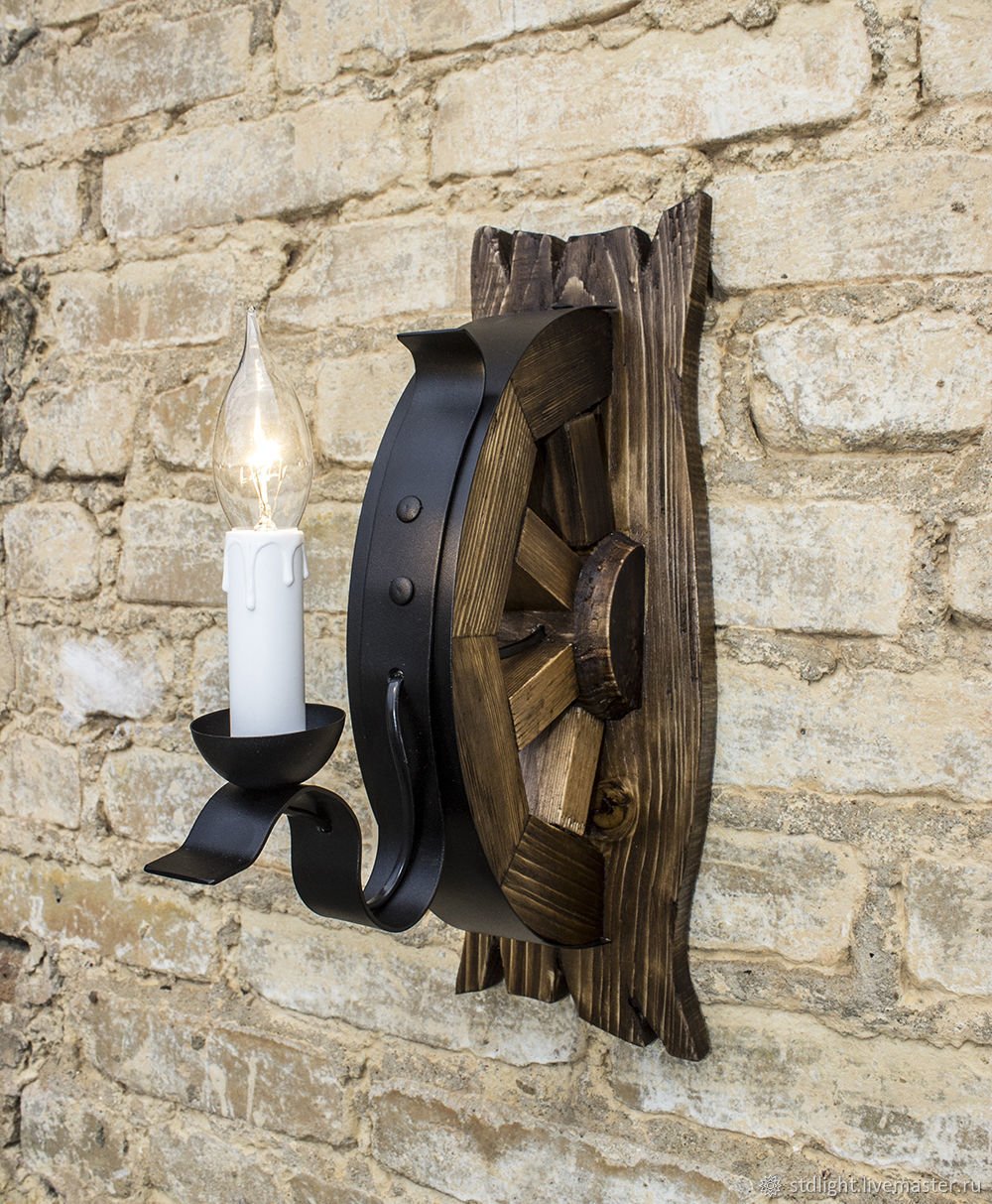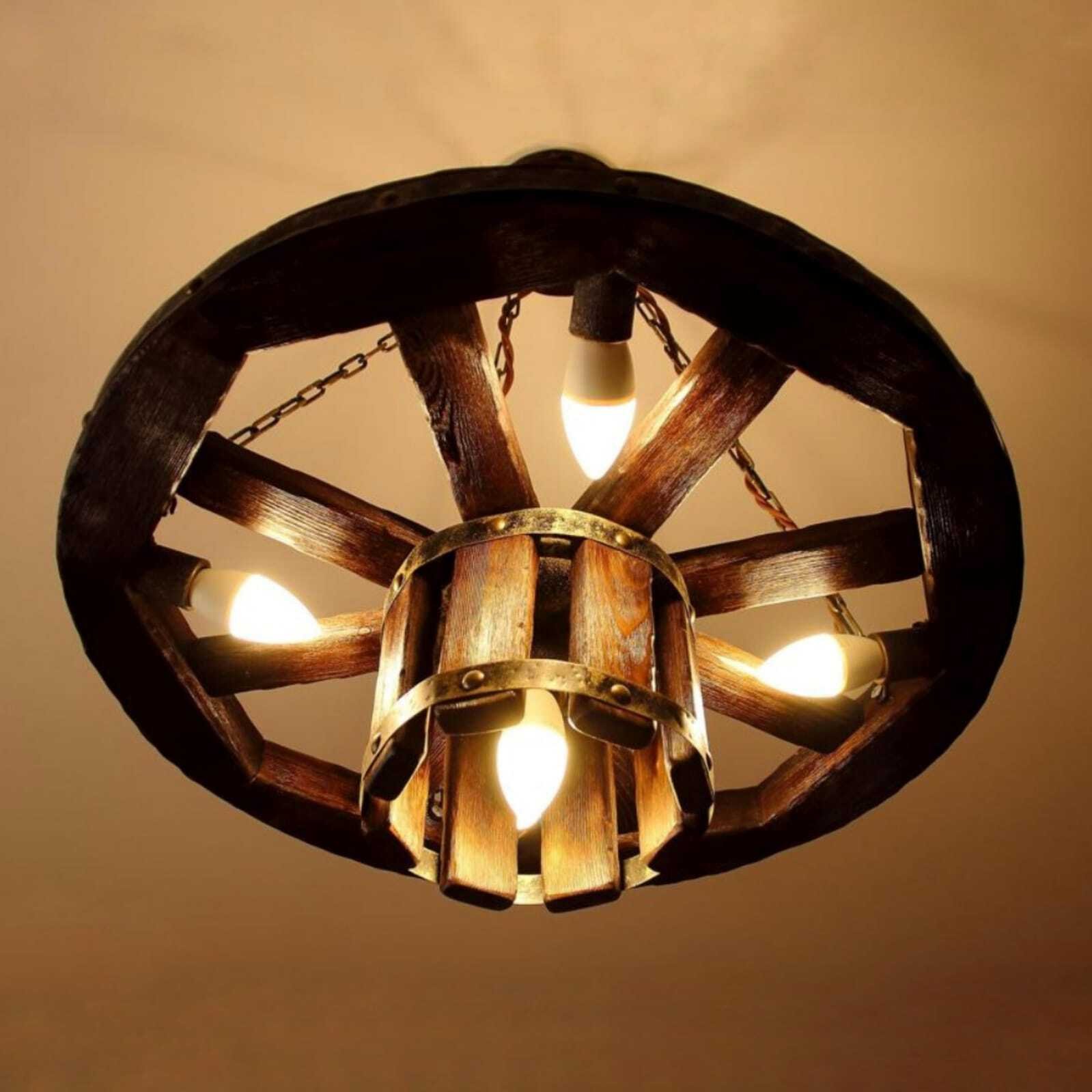 Светильник деревянное колесо