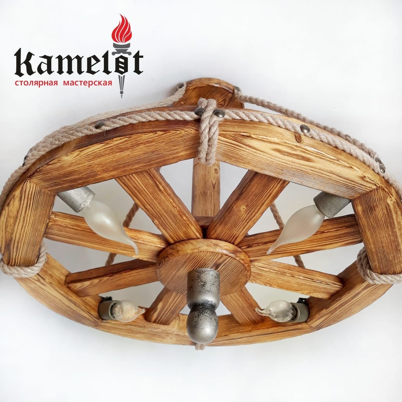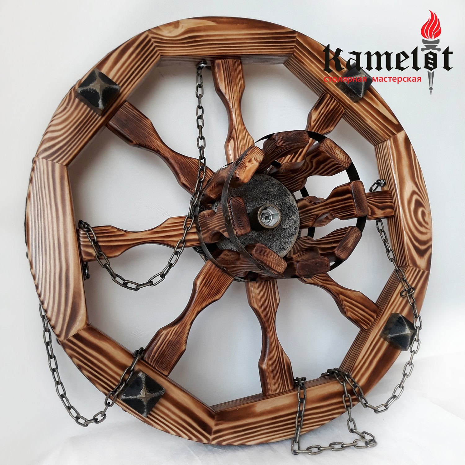 Люстра колесо из дерева