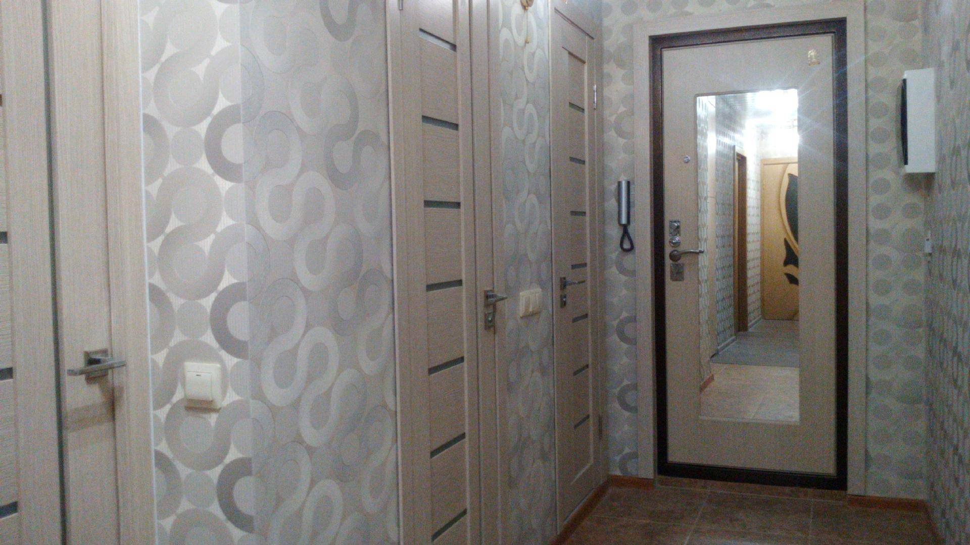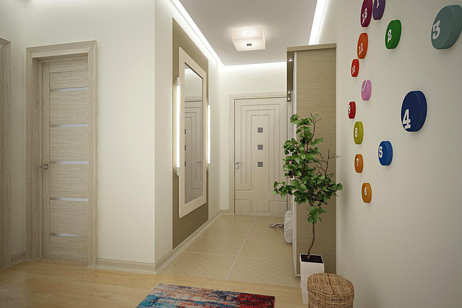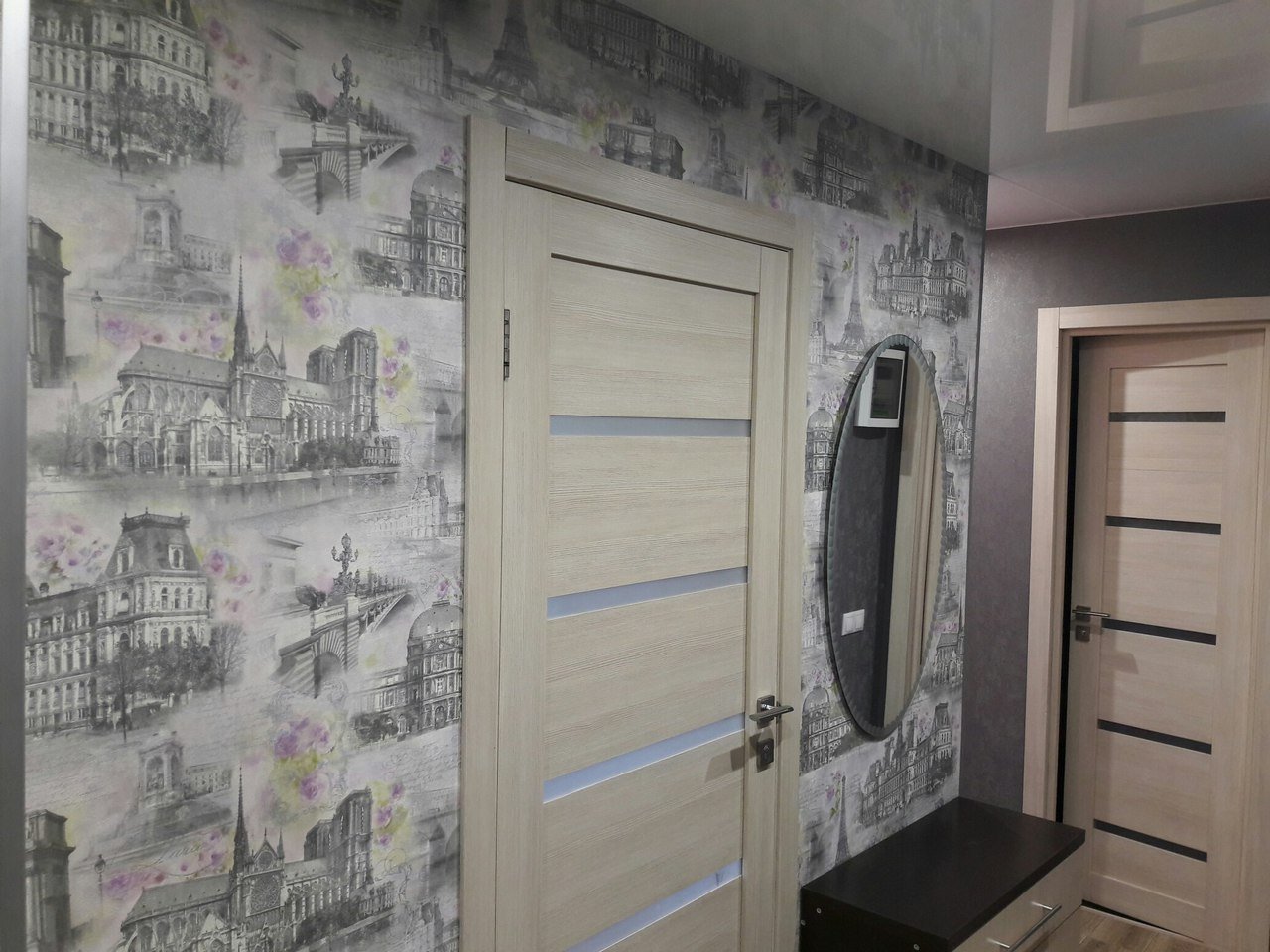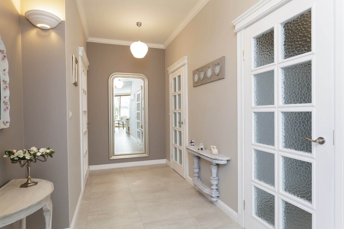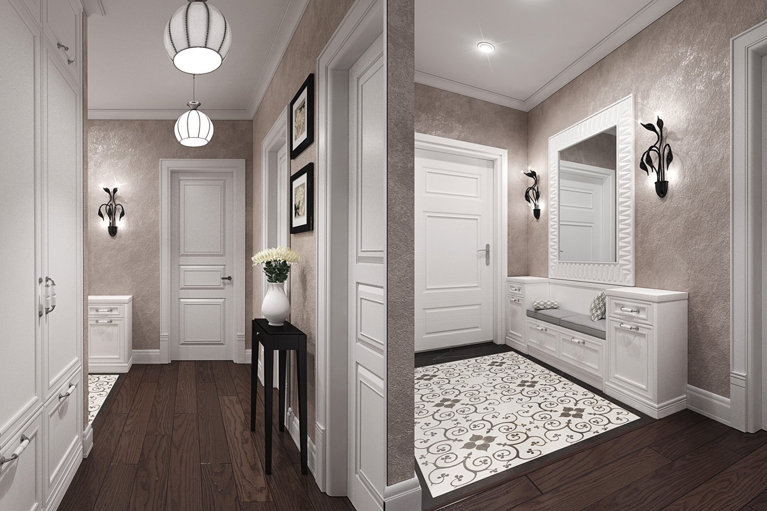 Интерьер в серых тонах с белыми плинтусами и дверями
