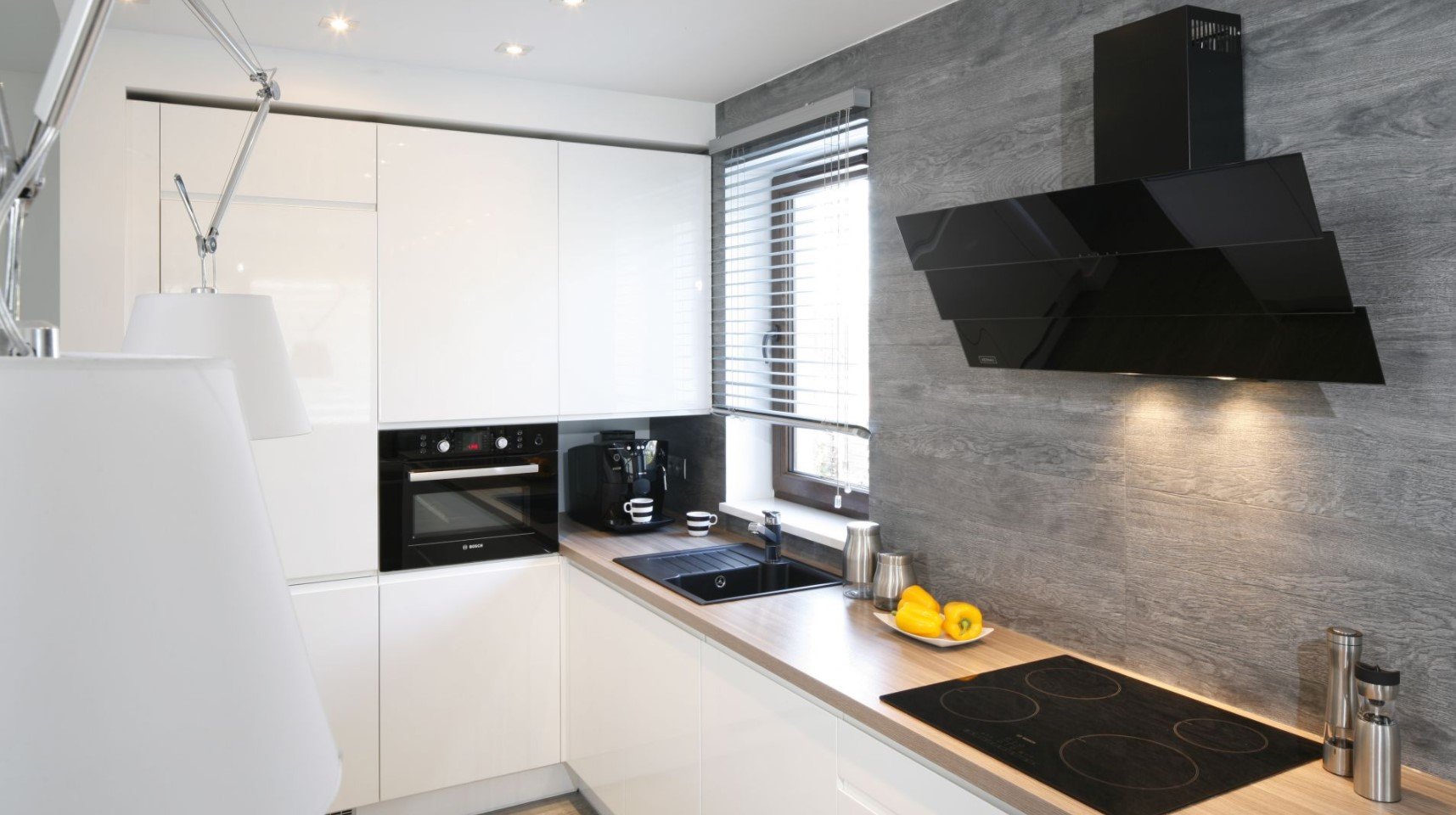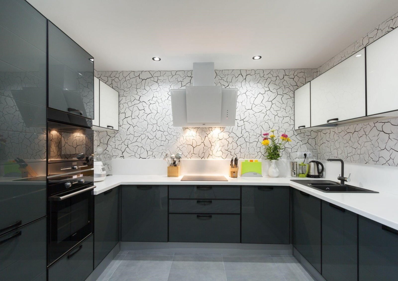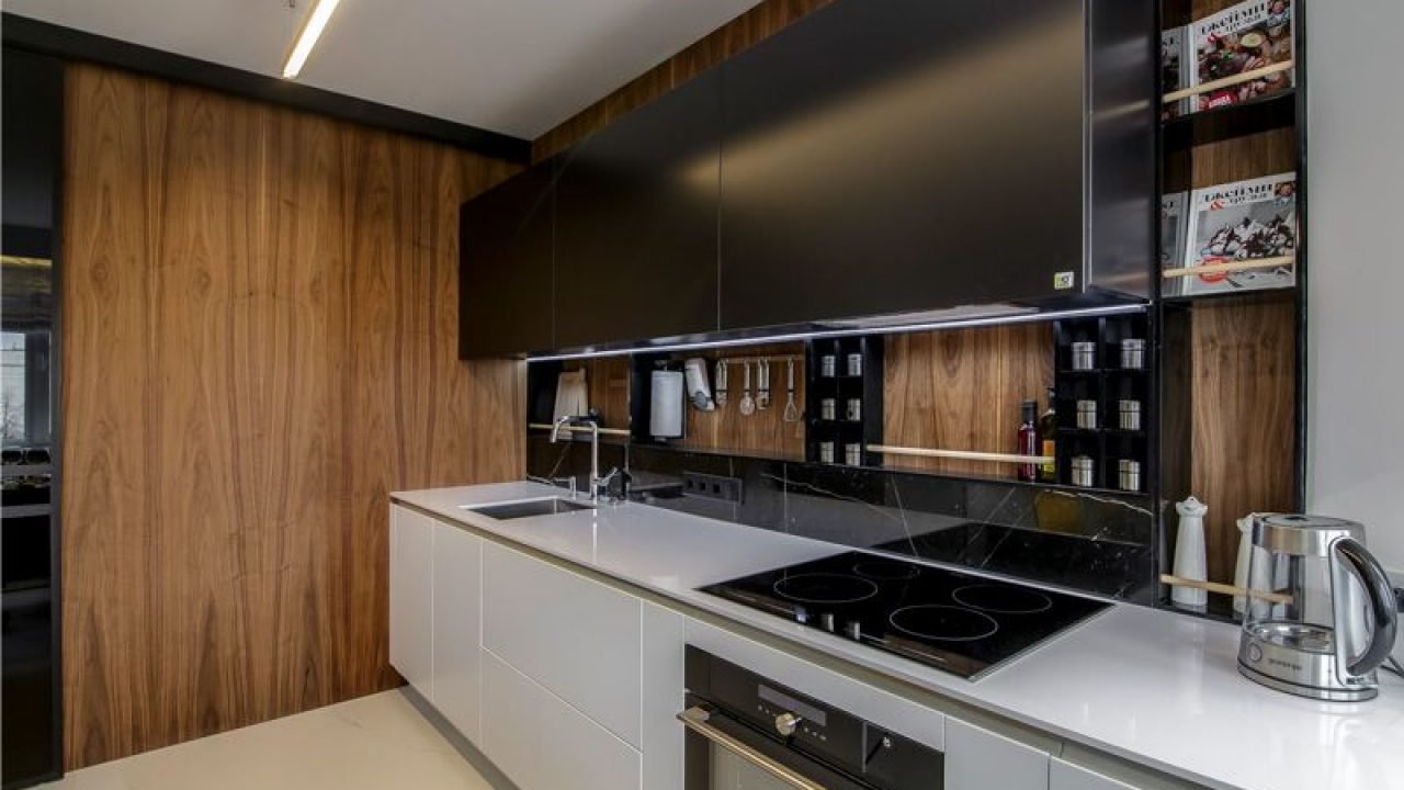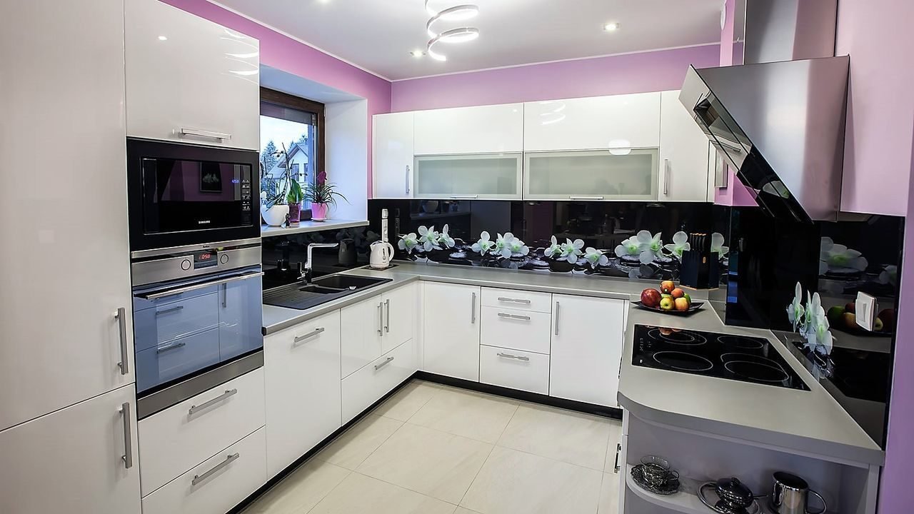 Белая кухня с черной техникой