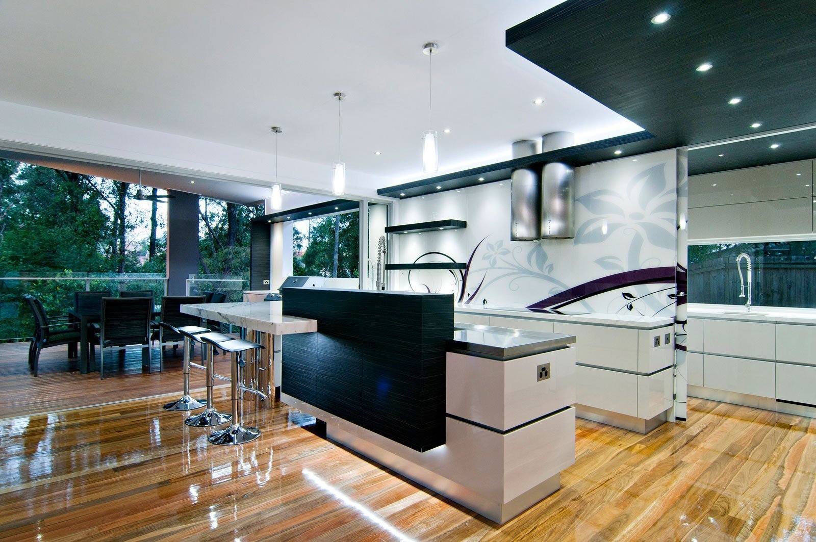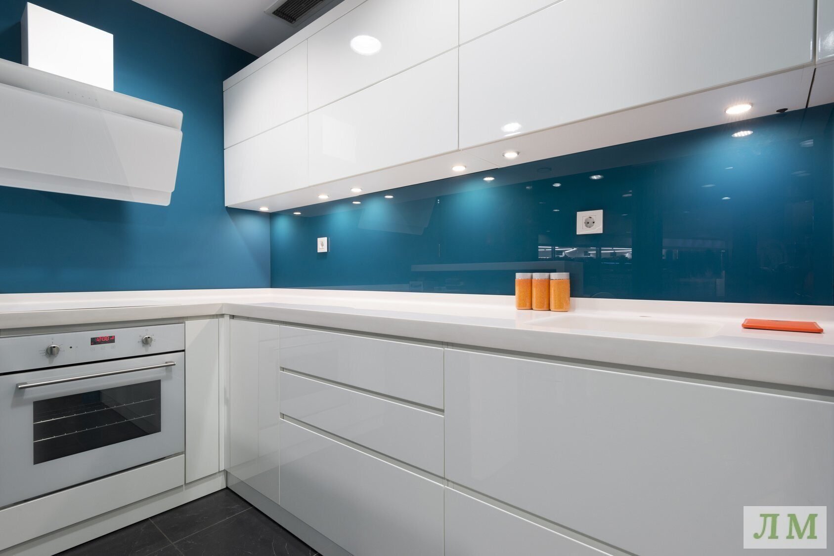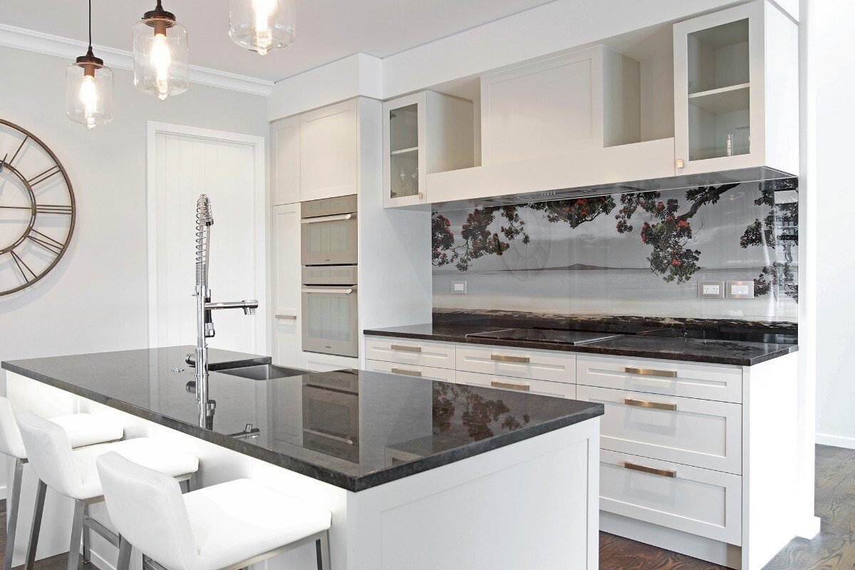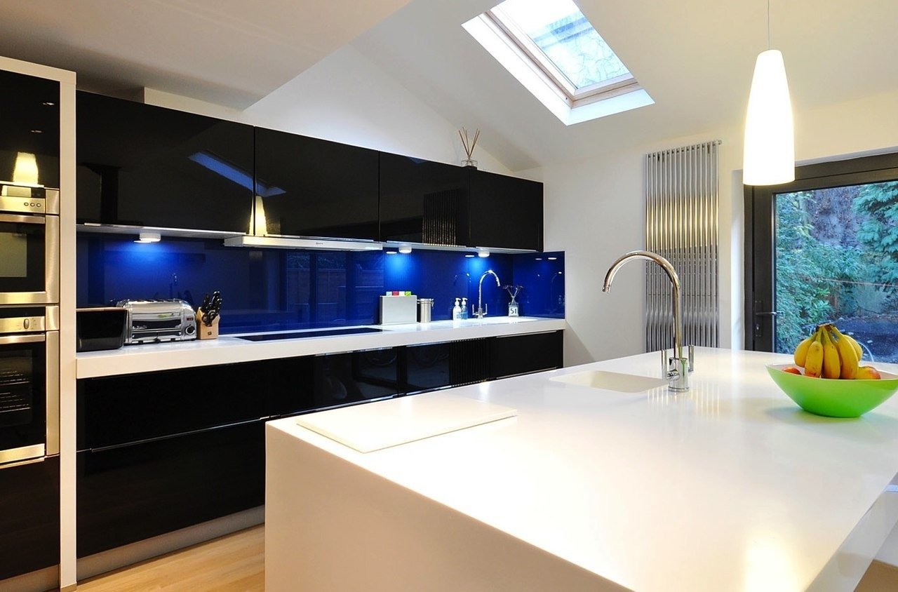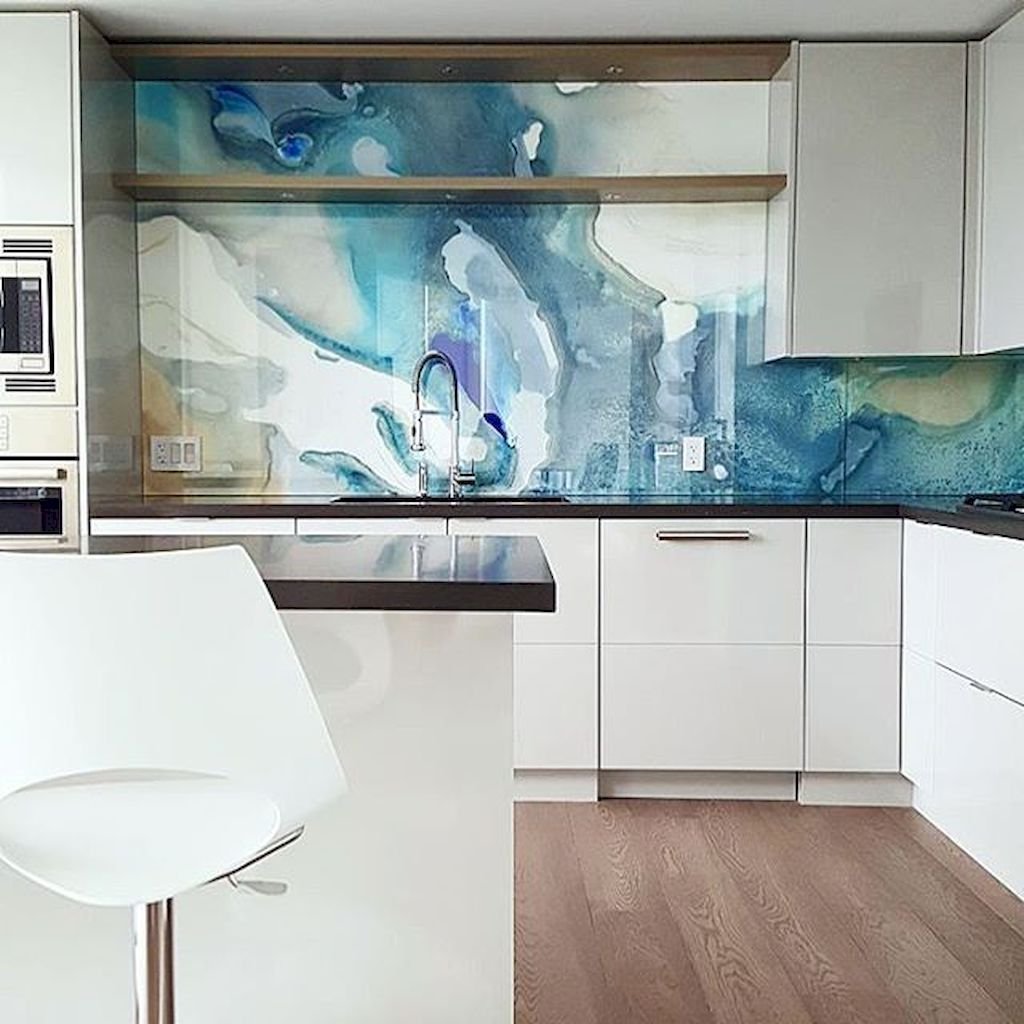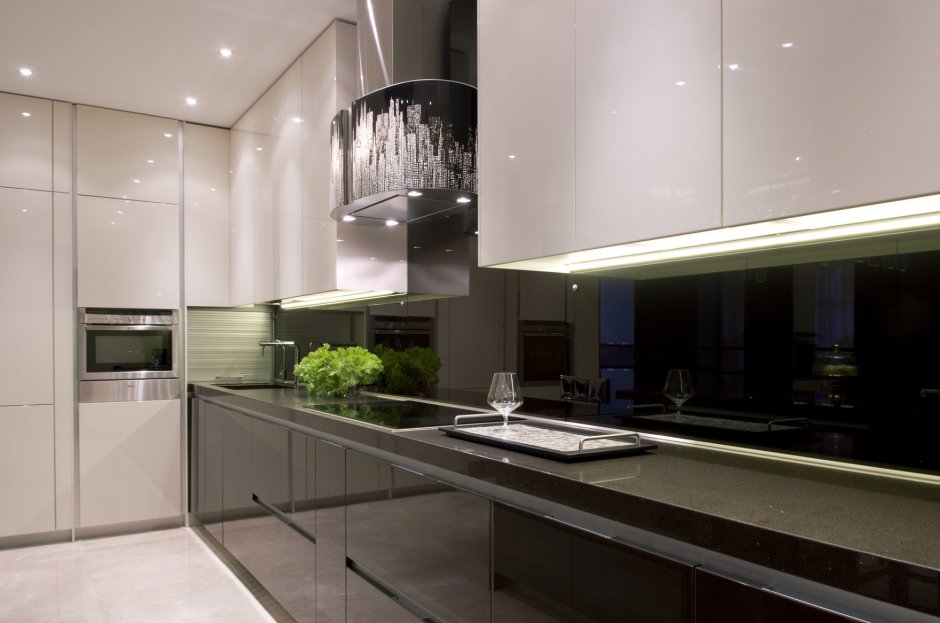 Современная кухня со стеклянным фартуком
