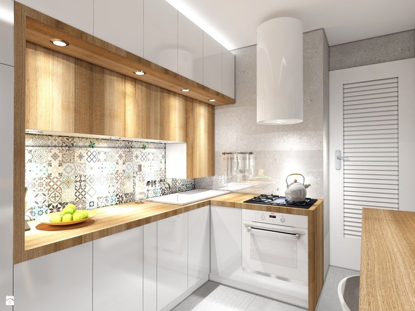 Белая кухня с деревянной столешницей
