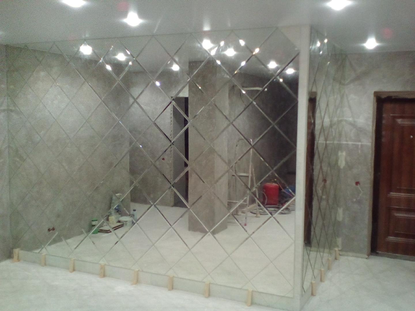 Зеркальная стена в ванной в ромбик
