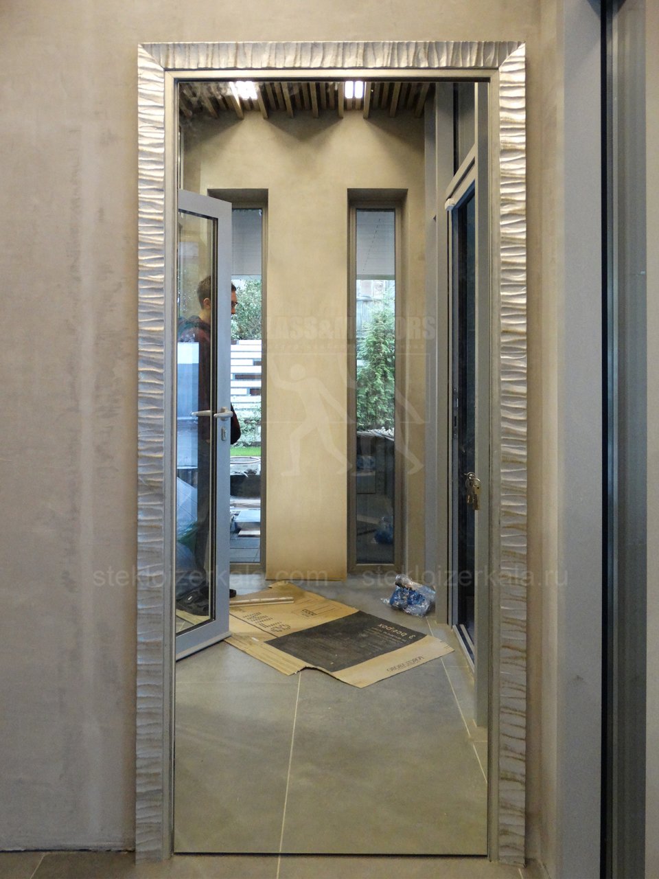 Потайная дверь зеркало с багетом