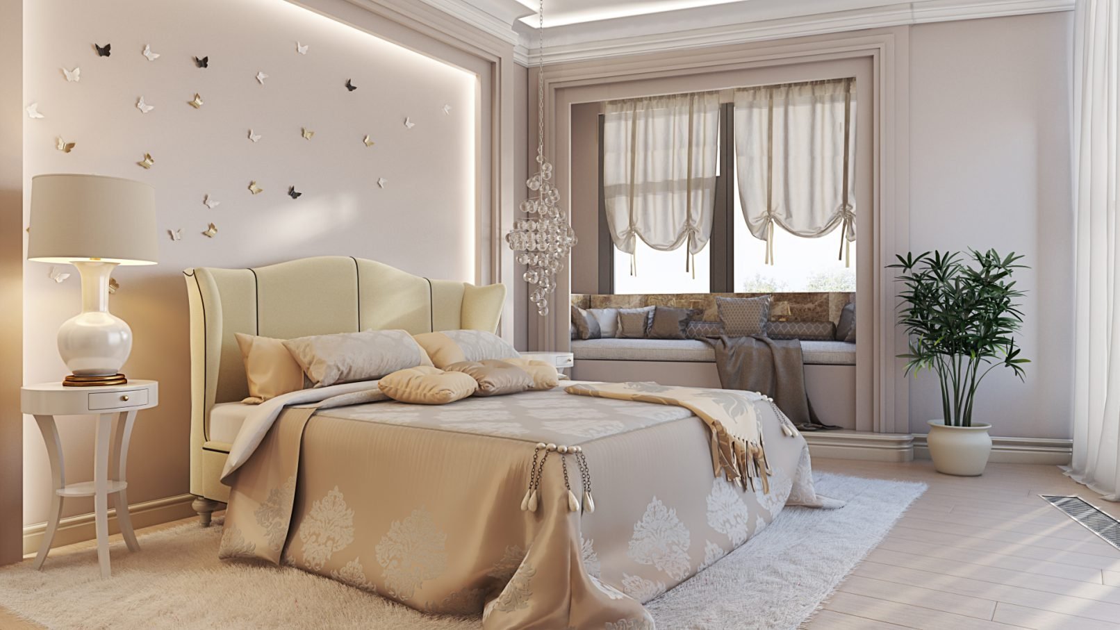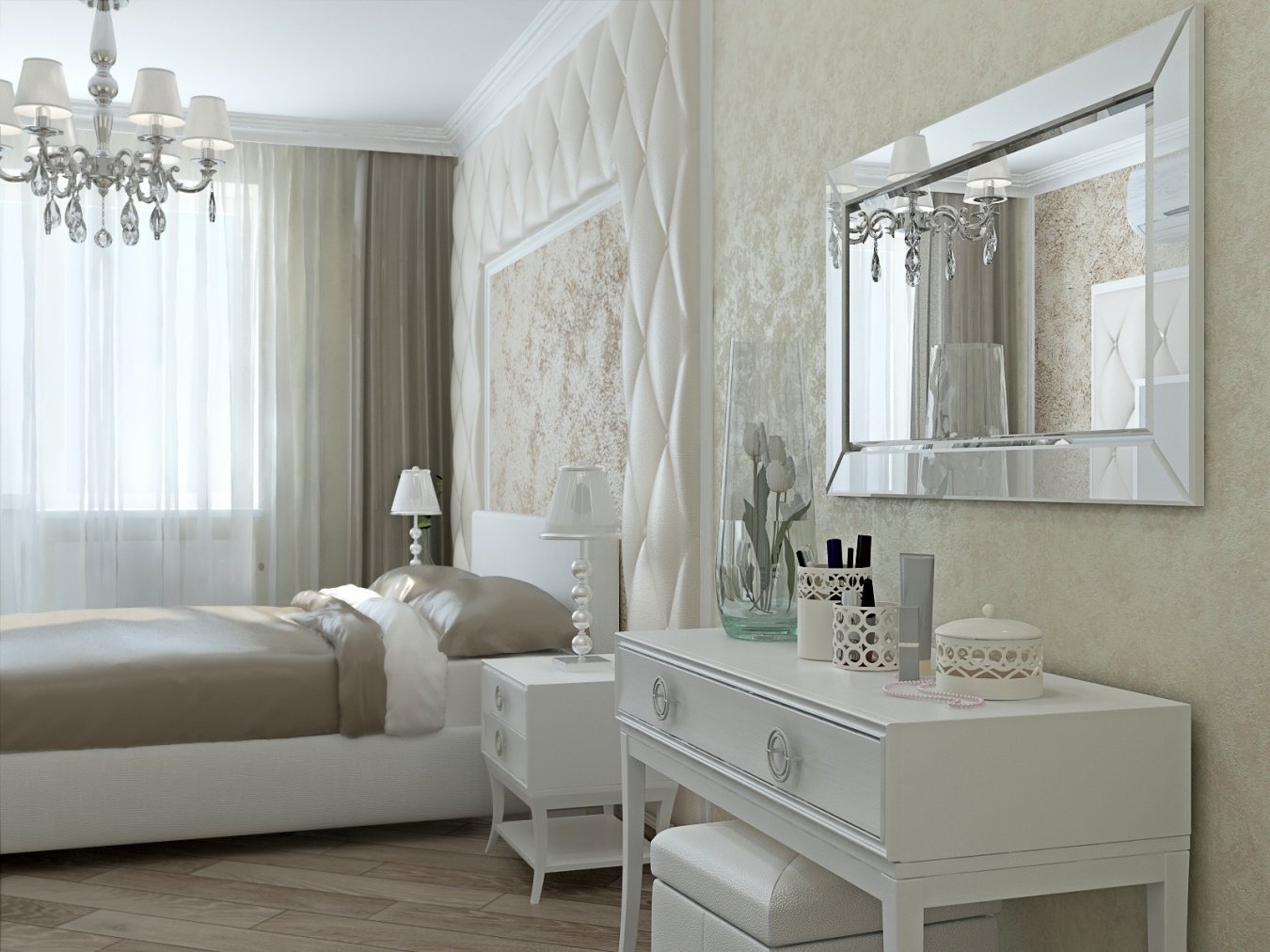Спальня в бело бежевых тонах