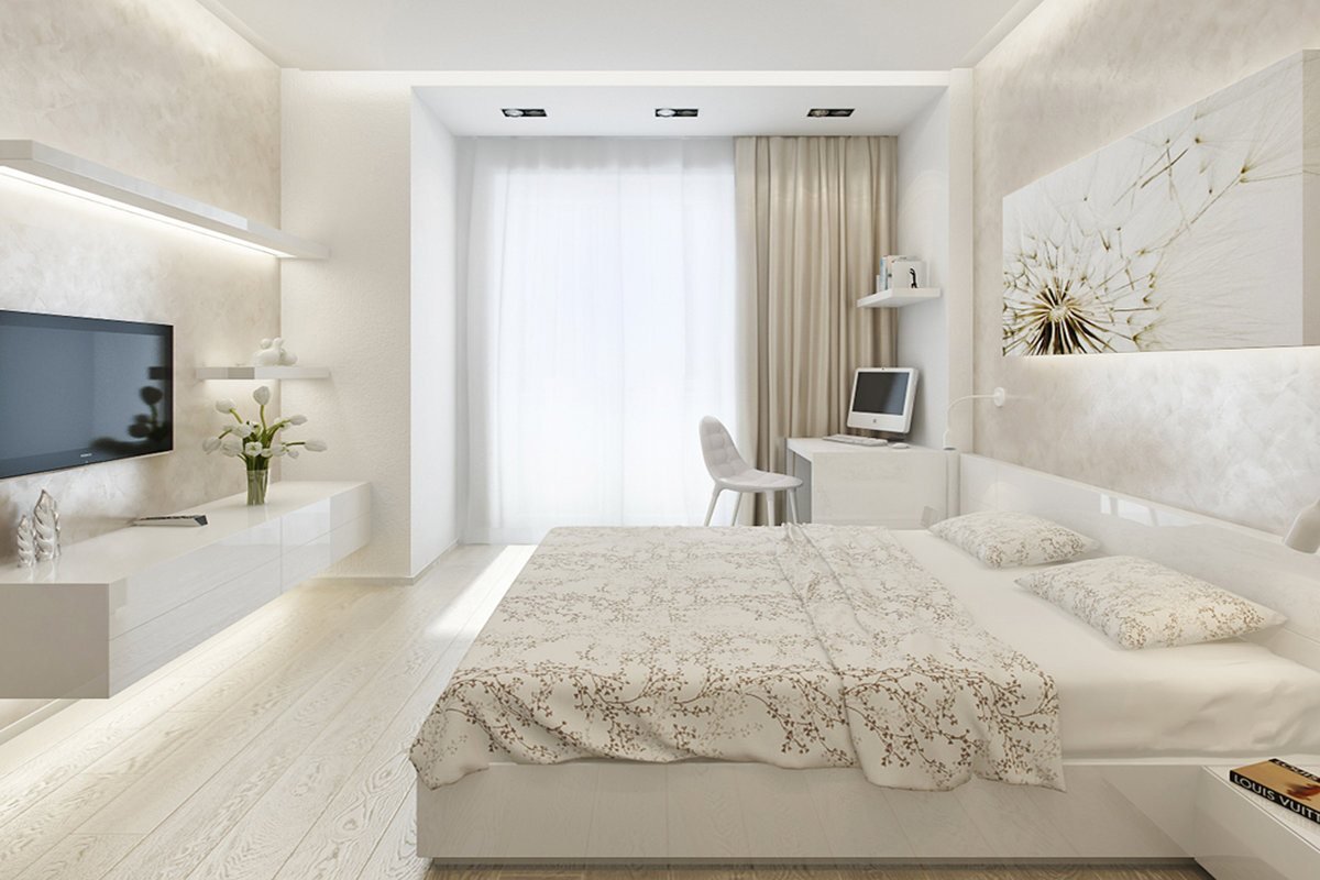 Интерьер спальни 14 м2 светлых тонах