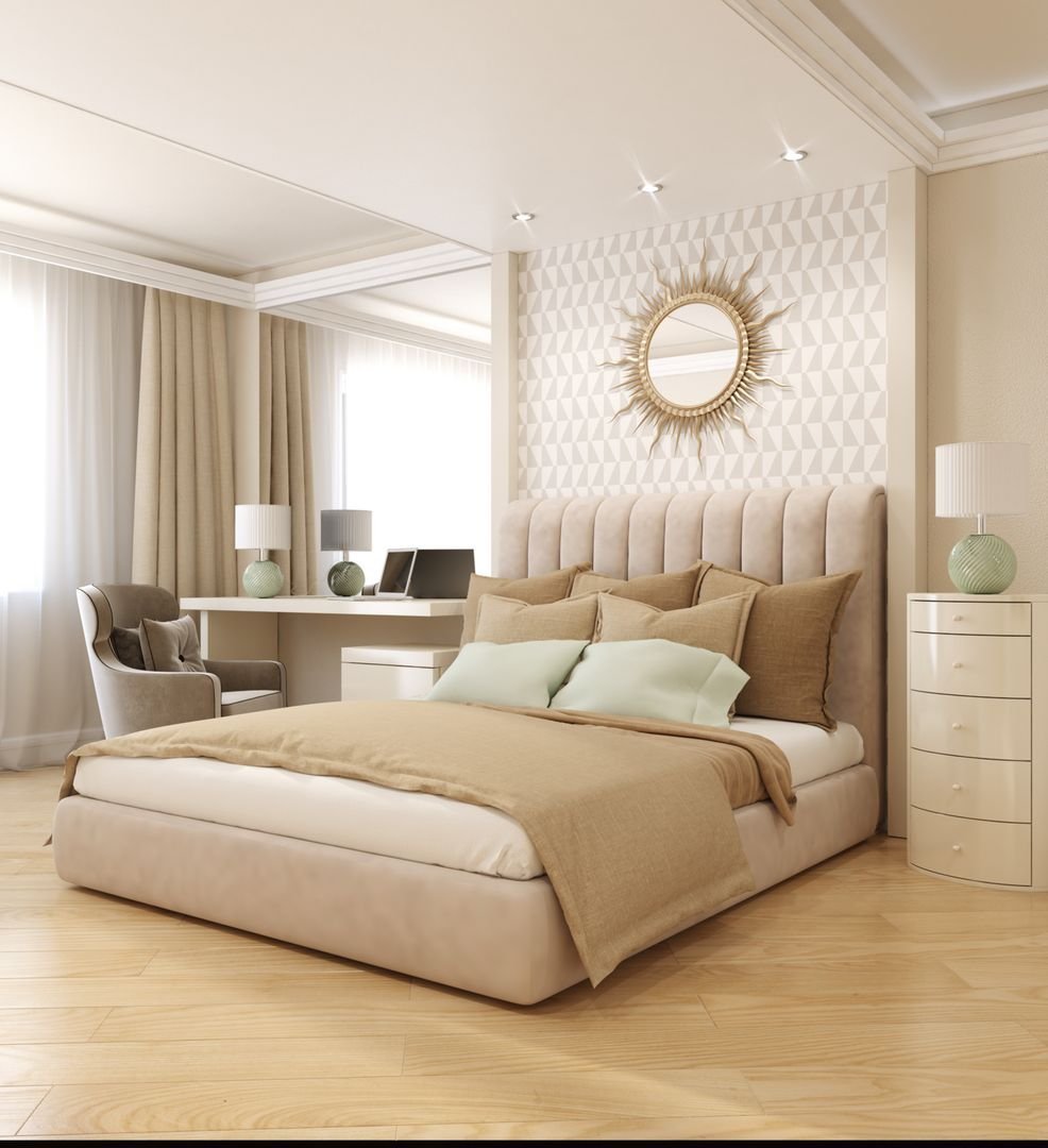 Спальня с бежевой мебелью