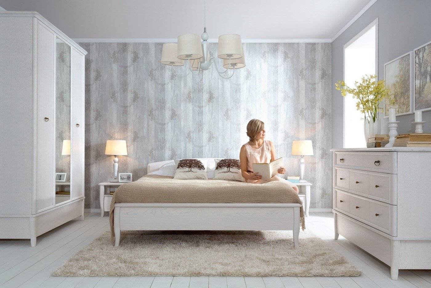 Спальня с белой мебелью