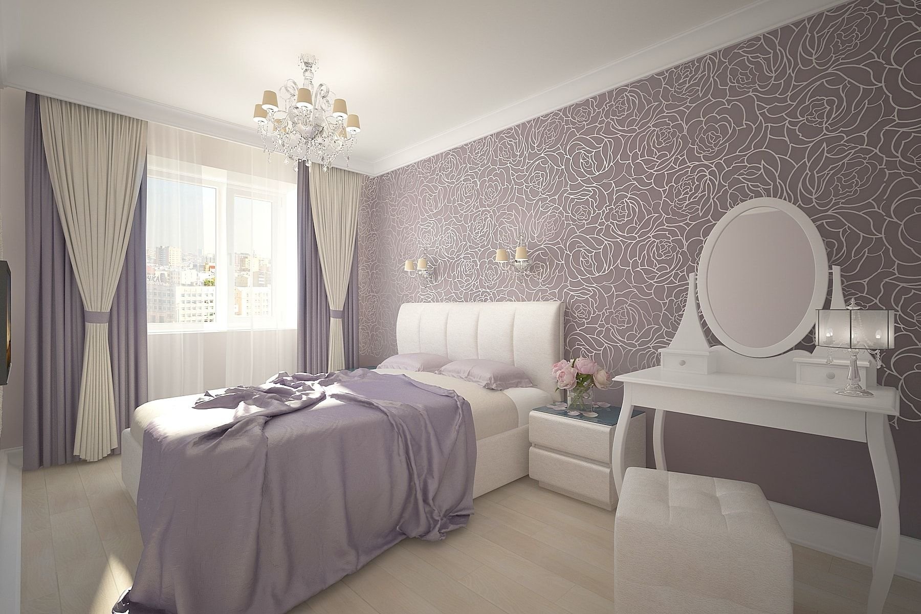 Спальня в светло сиреневых тонах