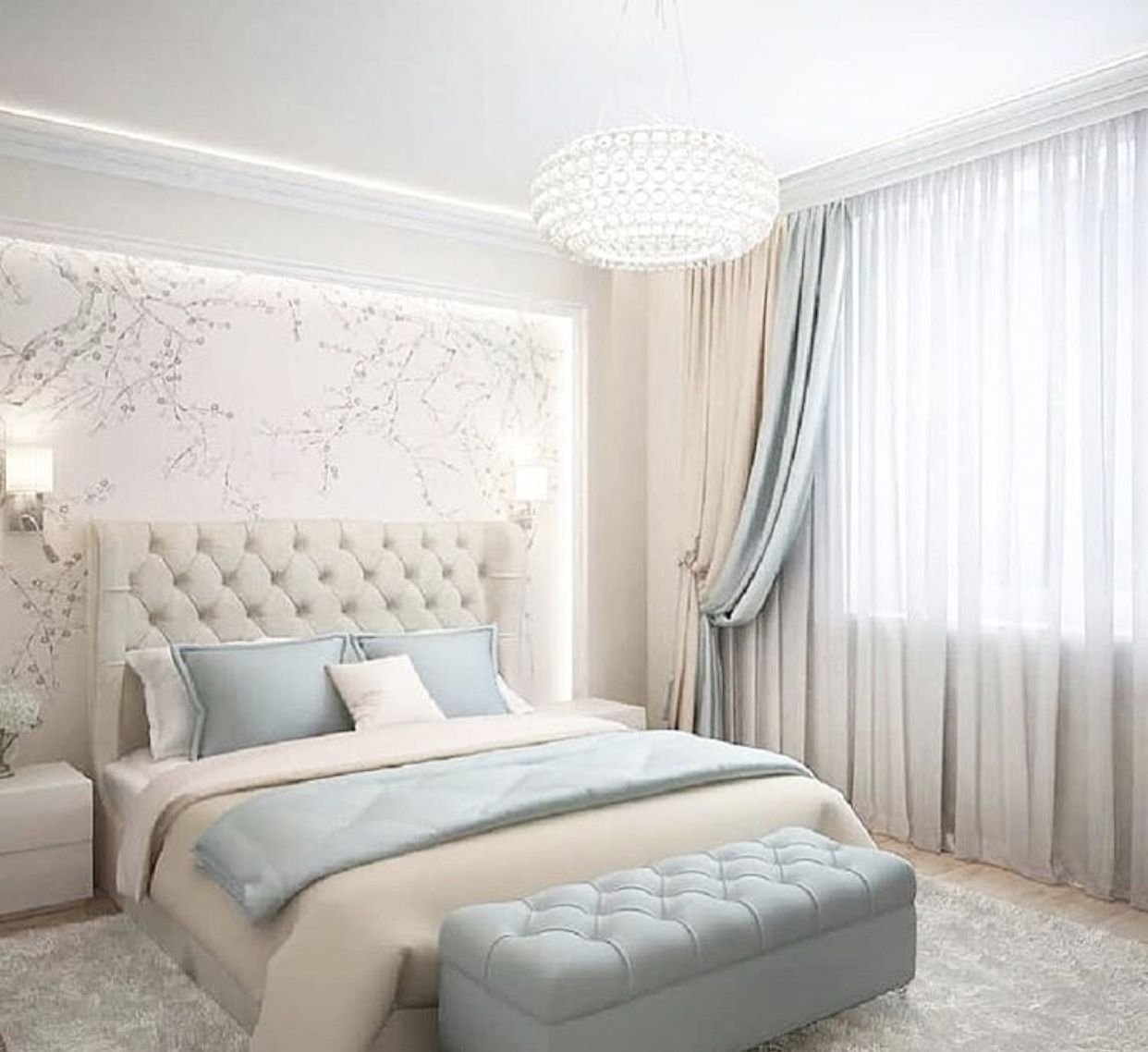 Светлые обои в спальню