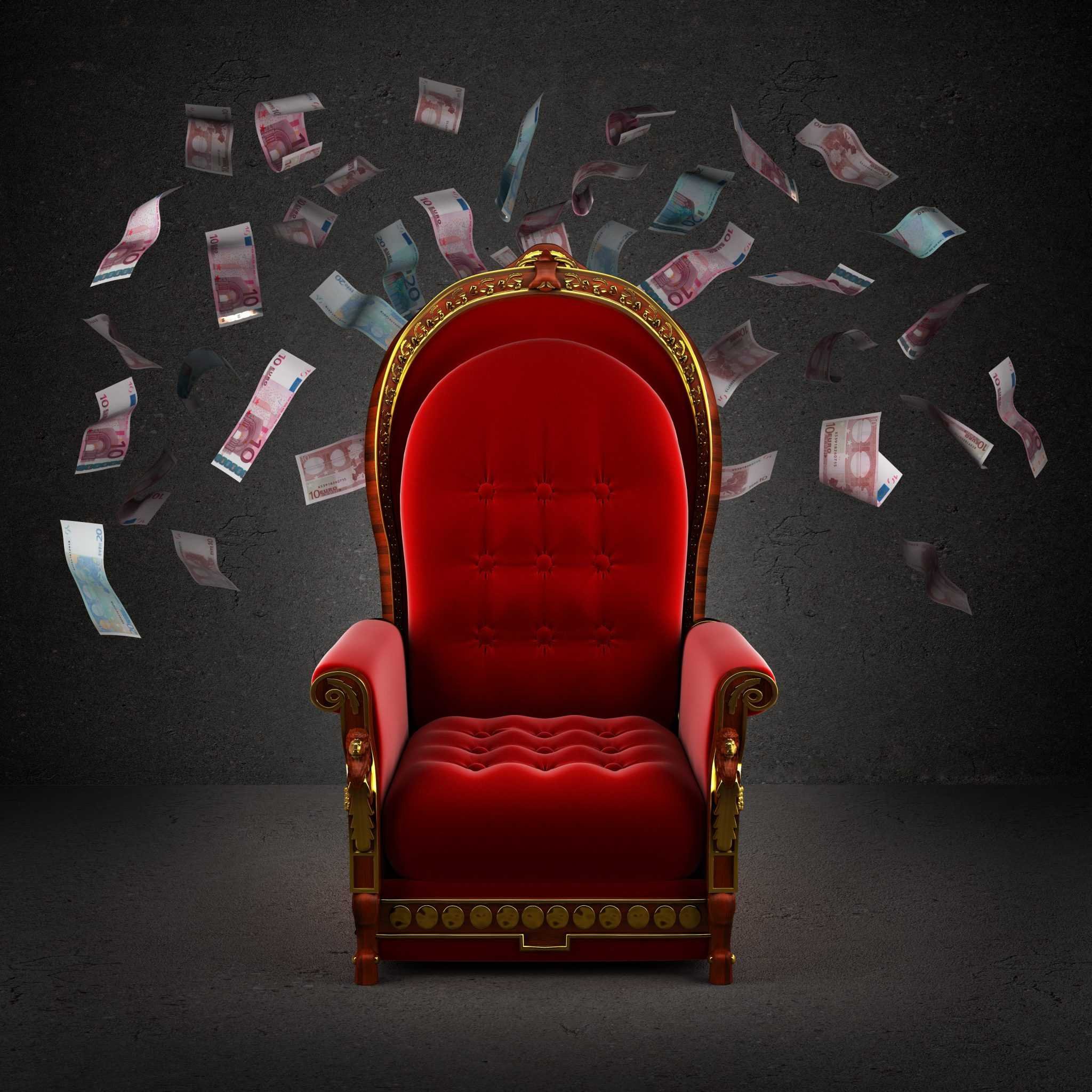 Сидит на троне из денег